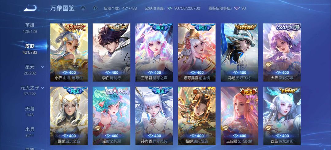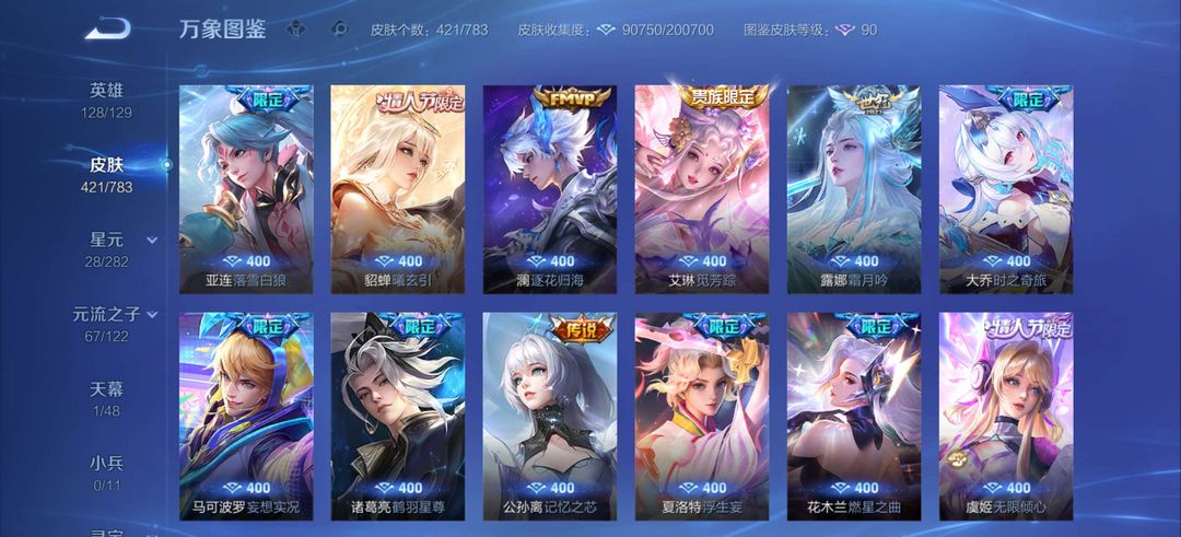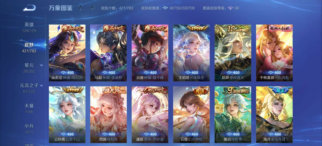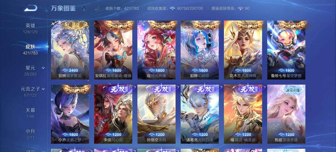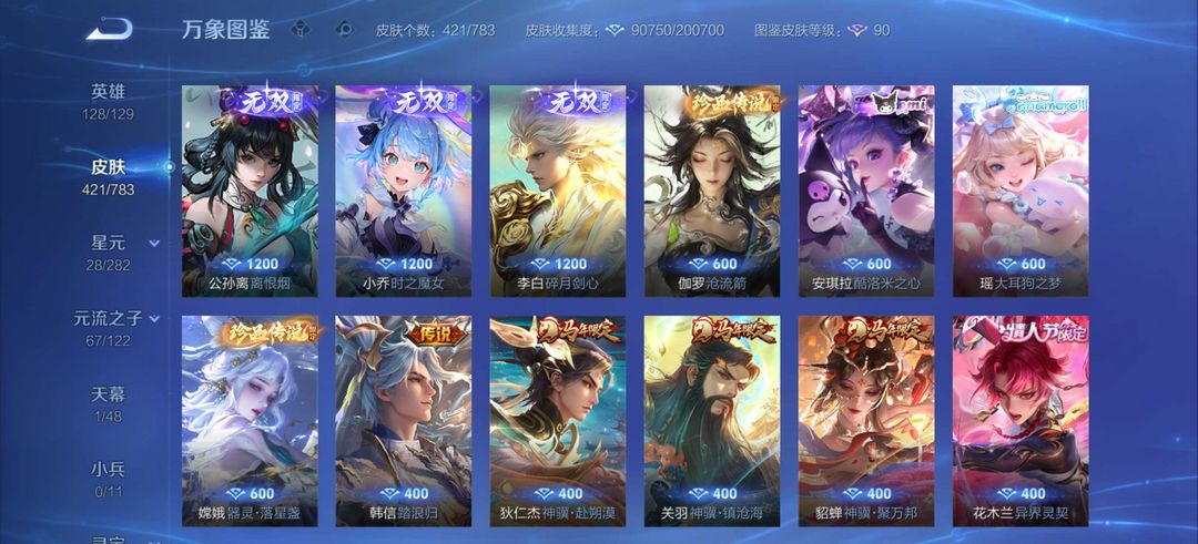 无双V10,429皮,馥梦繁花,颠倒童话,6典藏,8无双,详情看图,历史4金标,可排位,请善待