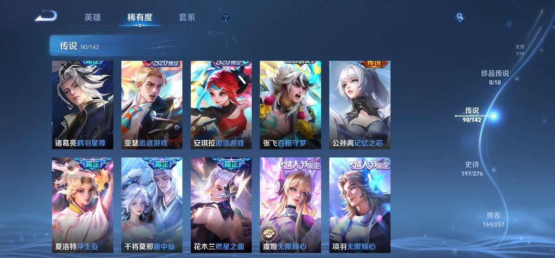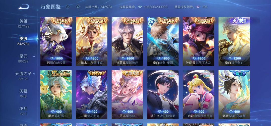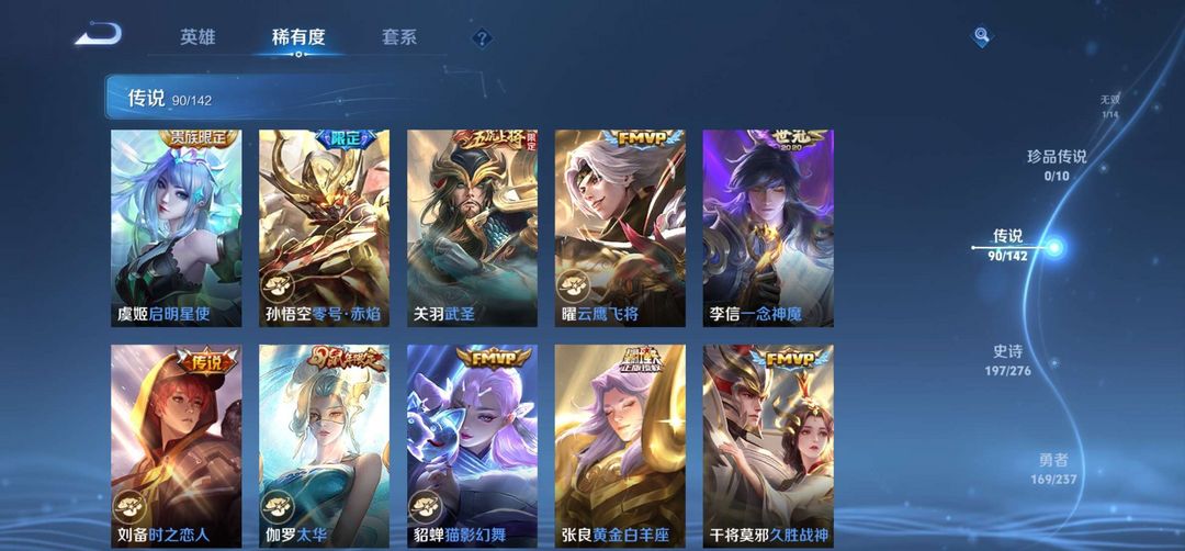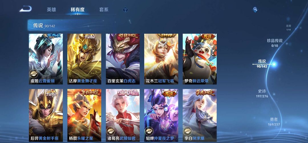 传奇王者111星 5典藏皮肤542皮肤;凤求凰 至尊宝 鸣剑拽影