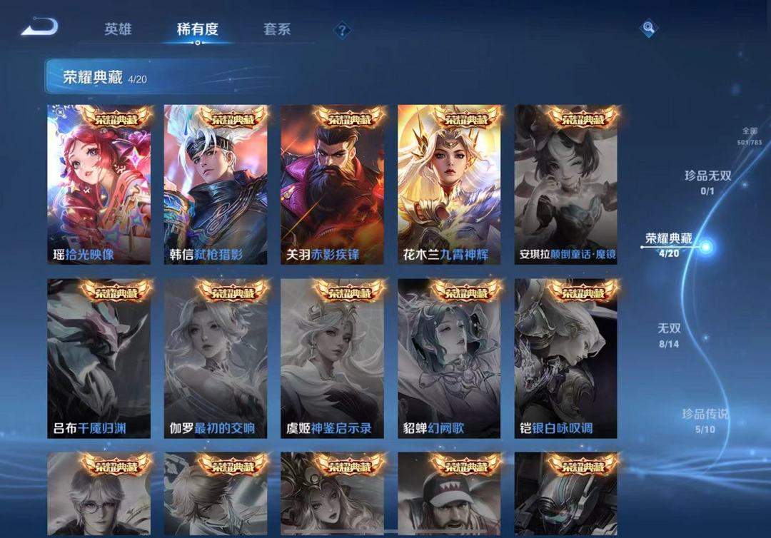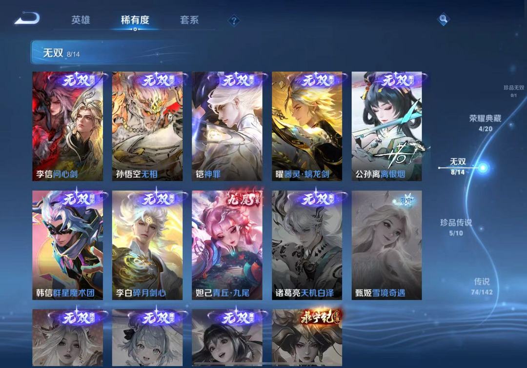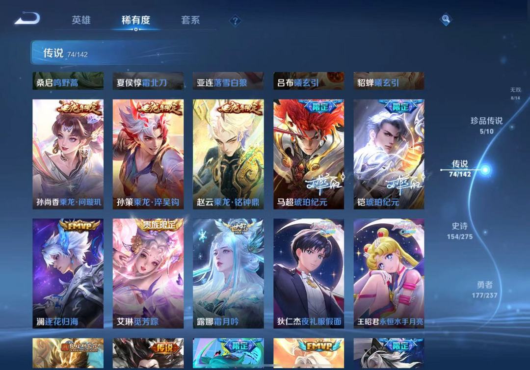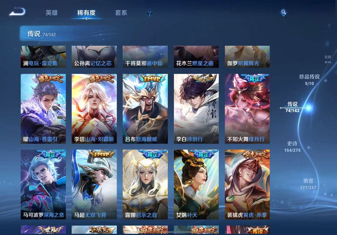 贵10/8无双74传说/马年全套/李信问心剑/伽罗沧流箭/韩信踏浪归/花木兰异界灵契/马年全套
