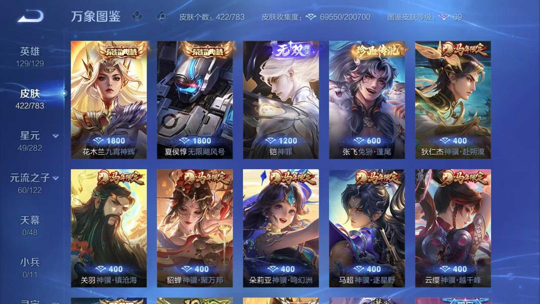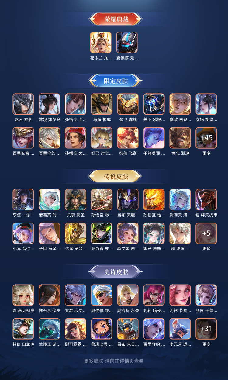 ❤️凯神罪无双❤️马年限定皮肤❤️蛇年限定皮肤❤️花木兰九霄神辉❤️夏侯惇无限飓风号❤️高质量皮肤多