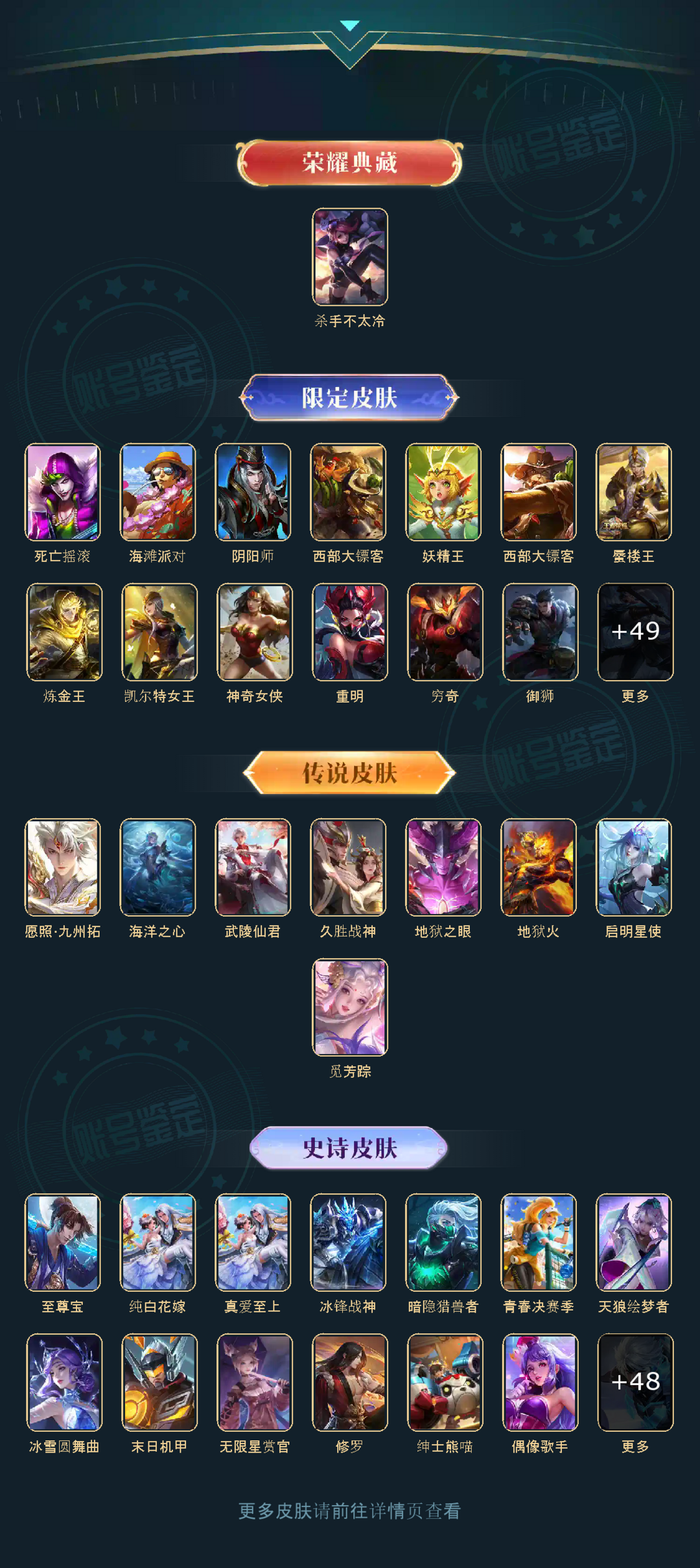 限制: 撤单率<70%才可租用此帐号装备描述:V10✨蛇限澜✨至尊宝✨杀手✨武陵仙君✨纯白花嫁✨真爱至上✨幻海之心✨久胜战神✨冰封战神