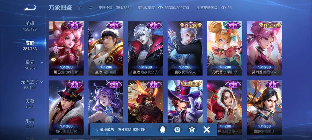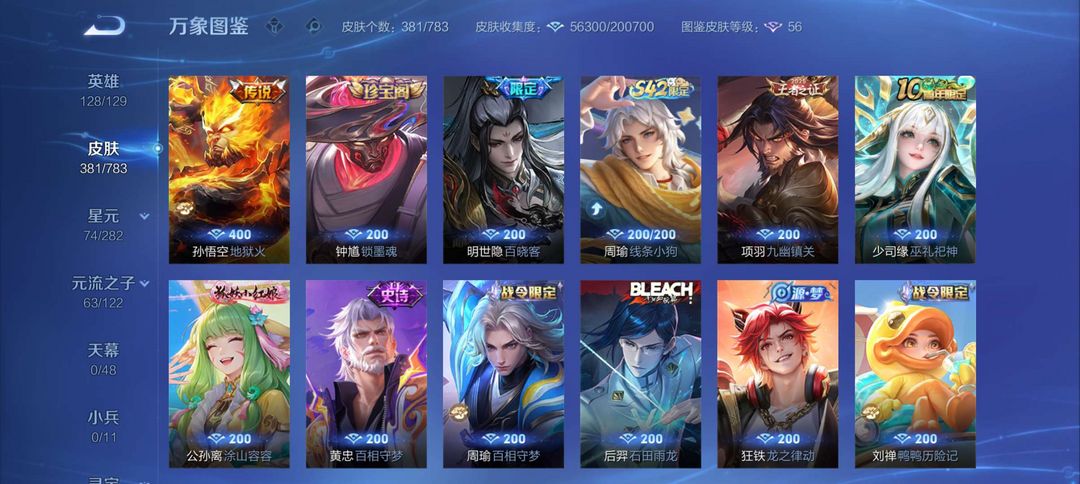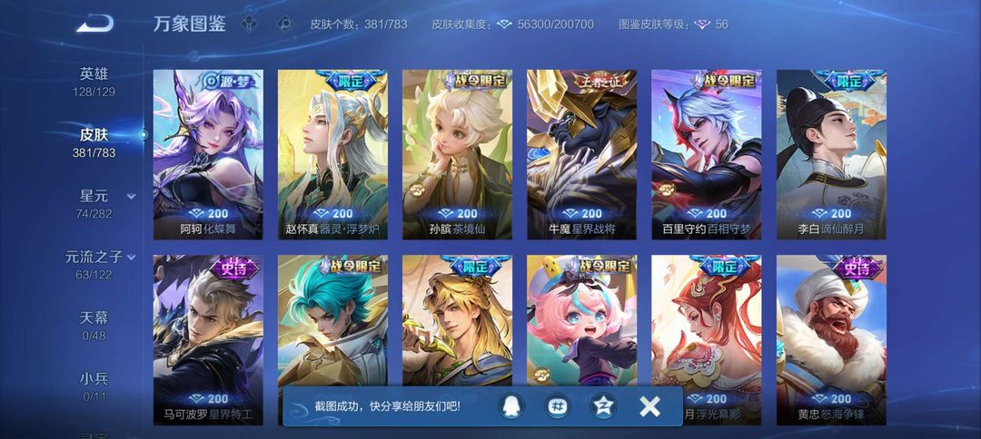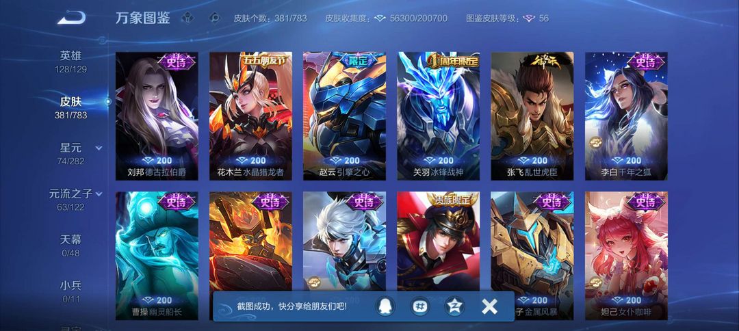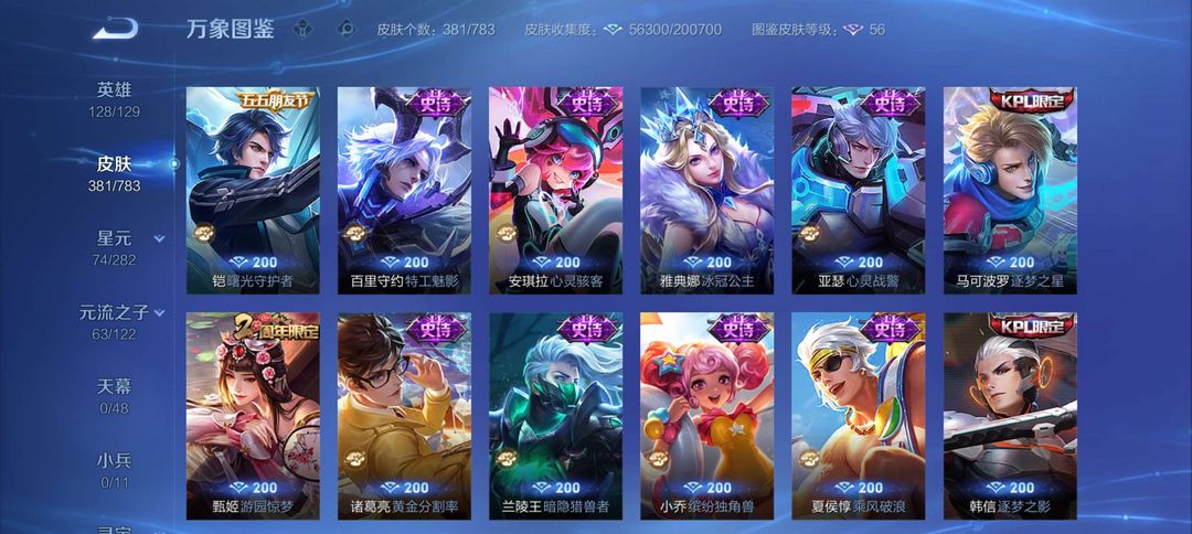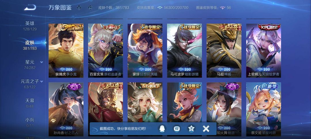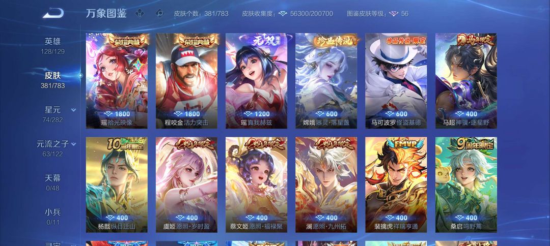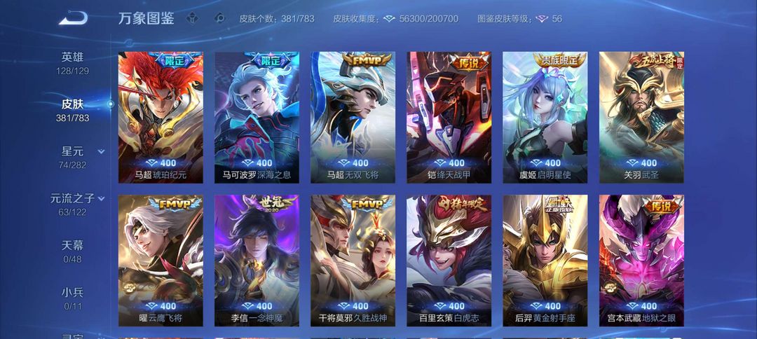 马超全皮 马克全皮 2荣耀典藏 1个无双 2个珍品传说 20个传说