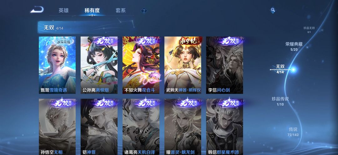 【7典藏】包天特惠⚡无双贵族⚡️女号⚡瑶典藏⚡️甄姬火舞无双⚡6星4无双1珍品⚡狐妖小兵⚡️可排位