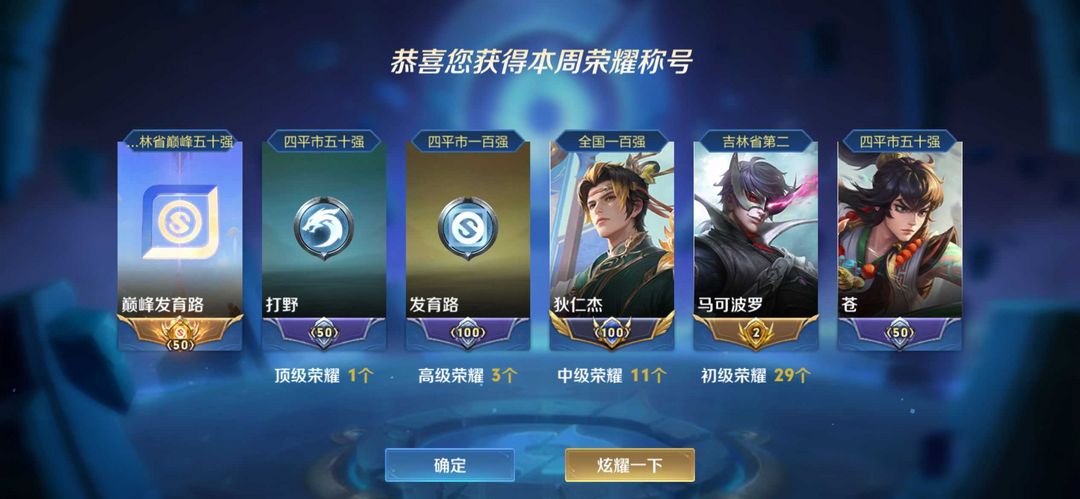 荣耀段位发育巅峰千强框2077❤11月在榜省3马克省6狄仁杰10市标❤馥梦繁花螭龙剑-碎月剑心❤禁巅