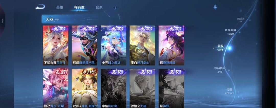 v10丨706皮肤25水晶5小兵有安琪拉丨7无双4珍品丨2国标3金标丨16星传说丨包天特惠