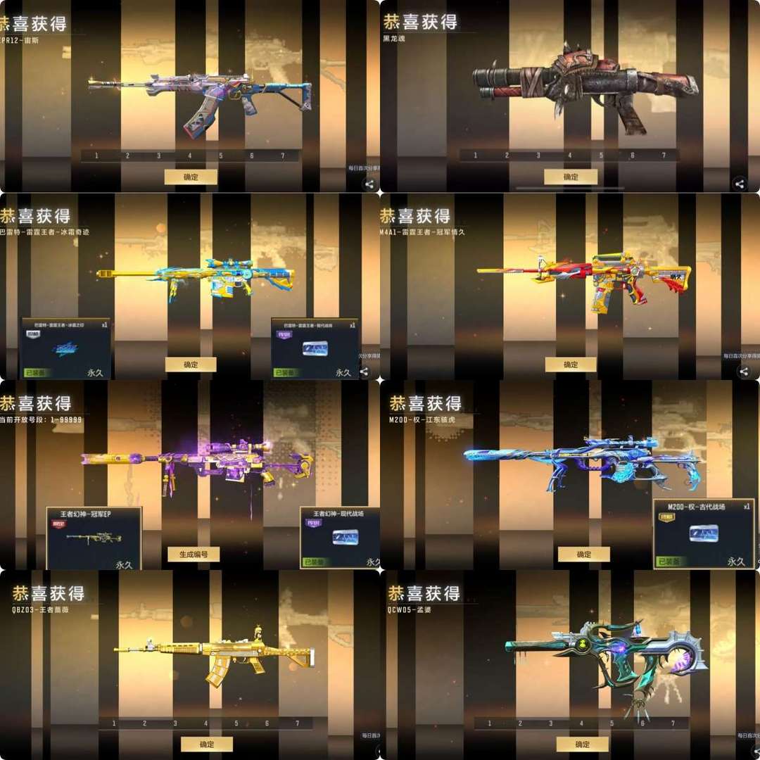 装备描述:本店铺已成功起诉赔偿4名开挂封号租客,严厉打击恶意开挂,自觉遵守游戏良好环境,望客官配合根据《刑法》第二百七十五条故意毁坏财物,数额较大或者有其他严重情节的,处三年以下有期徒刑、拘.役或者罚金数额巨大或者有其他特别严重情节的,处三年 以上七年以下有期徒刑 ⭐ 主流王者武器有✨王者幻神,王者之竞,QBZ03-王者蔷薇,巴雷特雷霆王者,王者之力,王者之怒,王者之光,王者之神,王者之翎,王者之城,王者之翼,王者之势,王者之魄,王者之影*2,王者之心,王者之兽,王者之武,M12S-雷霆王者,王者之蝶,王者之霆,王者之狱,王者之烈*8,COP357-雷霆王者,王者之轮,王者之迹,王者之业,王者之电,王者之魂,王者之击,王者之破,雷霆王者之锋,王者之痕,王者之啸,王者之锋*2,M200-权,M200-幻神,AK47-奉先,M4A1-星象,AK47-元让,AK47-孟德,M4A1游骑兵,MK47-仁德,KSG孟获,AWM-妙才,AWM-游骑兵,黑龙魂,COP357-安琪拉*2,COP357-堕天神*2,COP357-星.象,COP357-雷神,COP357-旗袍,81式-机械纪元