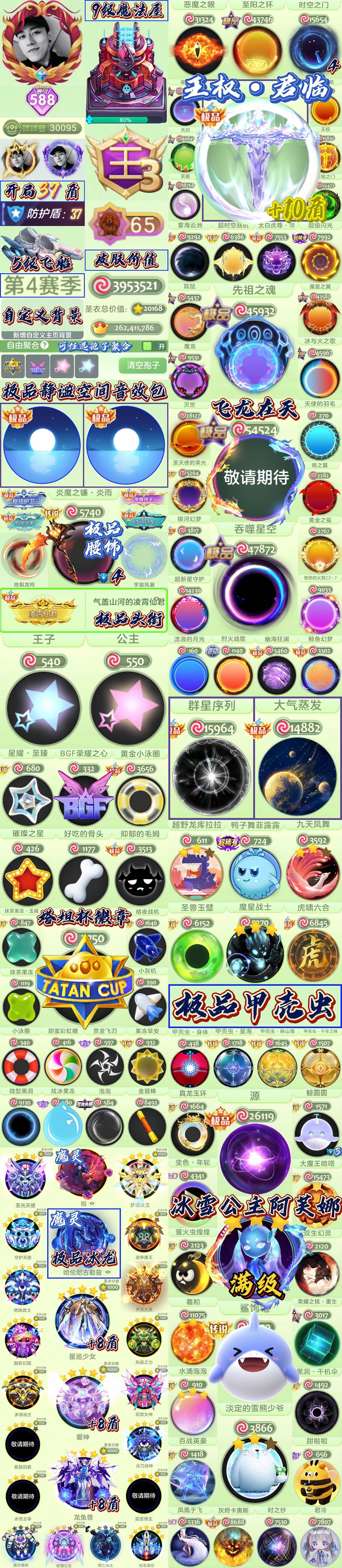 飞龙在天 恶魔之眼鲨饱饱 满级阿芙娜 冰龙 满级爱神 满级龙兔兽 塔坦杯 璀璨 王子公主bgf 静谧