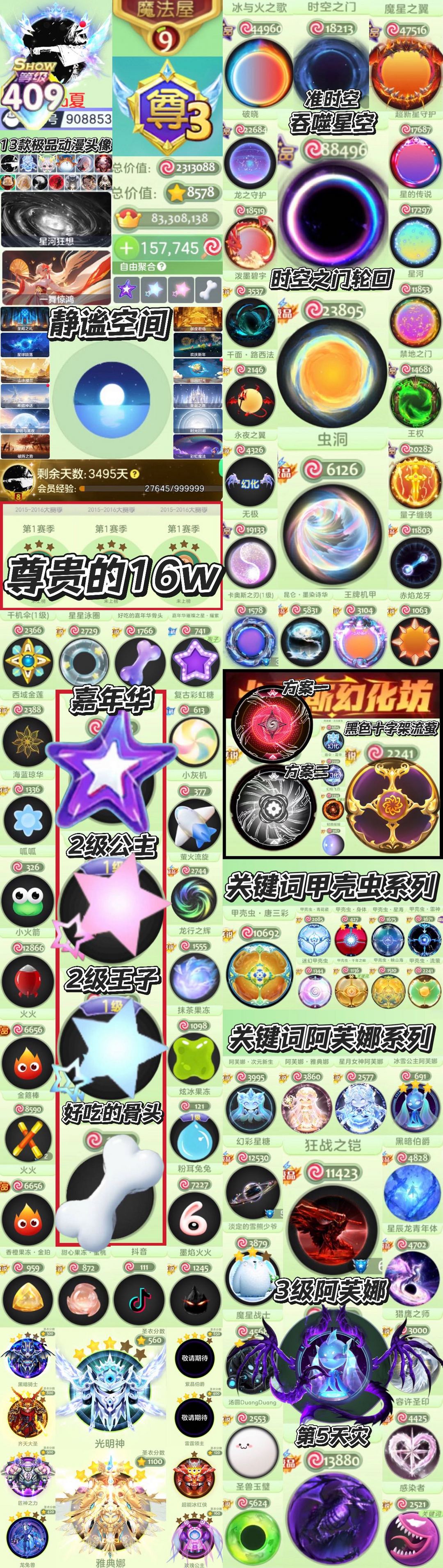 满赛季1.6万名400秀 黑洞 时空轮回 银色量子甲壳虫 满赛季嘉年华 王子公主 静谧空间满级阿芙娜