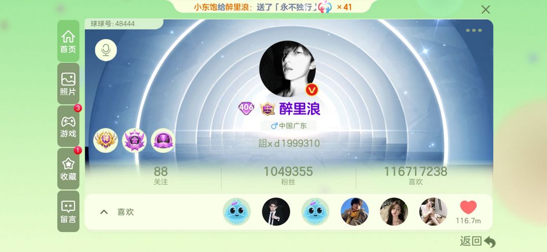 主播ID醉里浪、100w粉丝榜前10认证、嘉年华塔坦杯、bgf套、2022嘉年华、王子公子