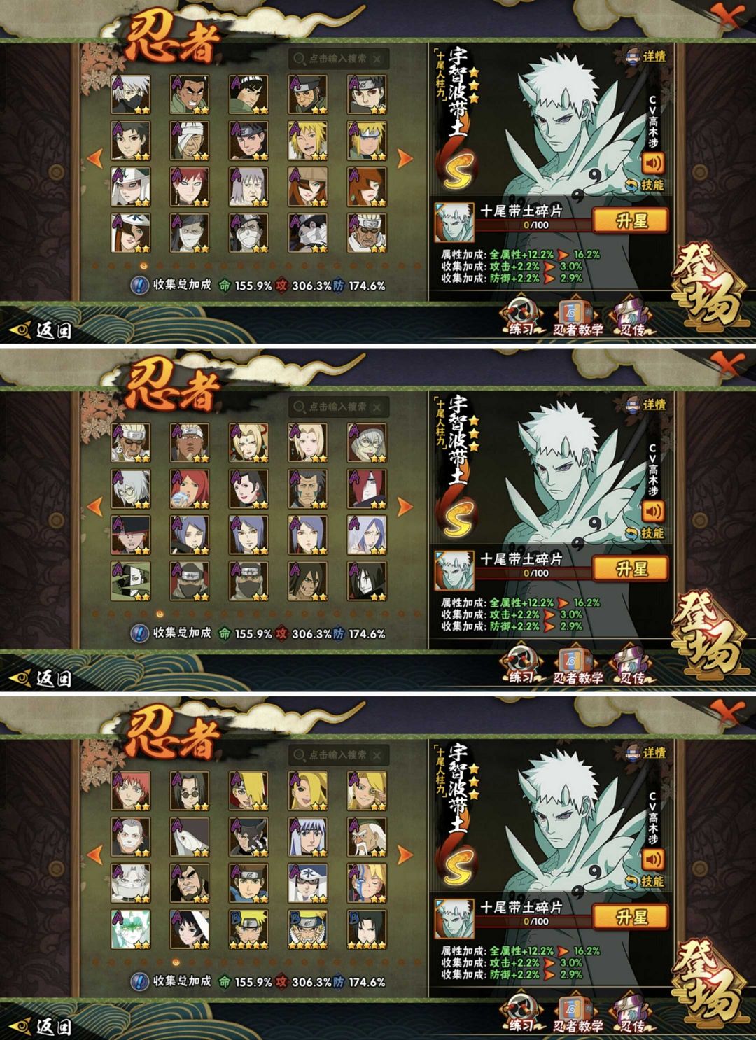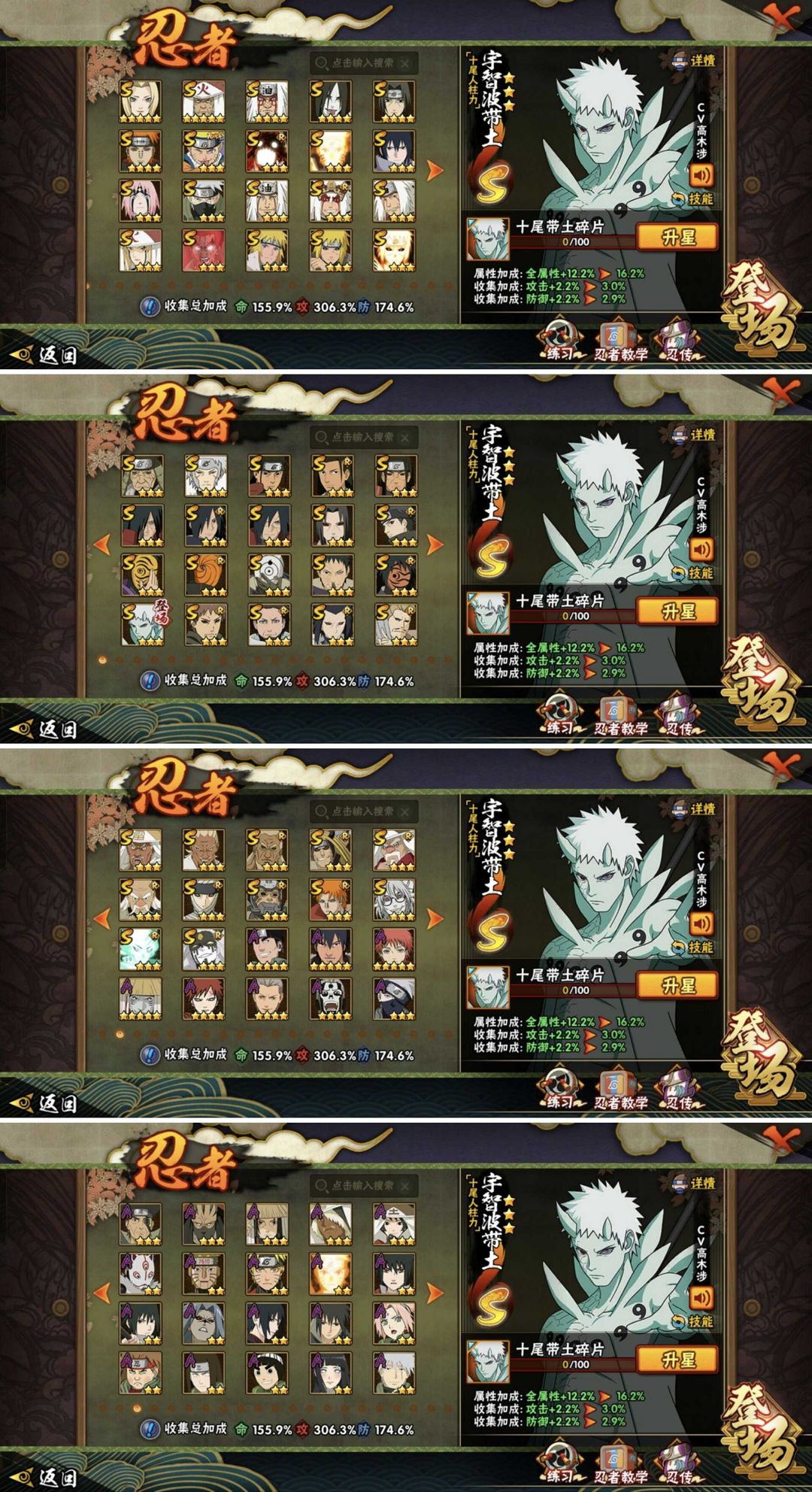十尾带土✨黑绝漂泊带土✨2600W364忍者✨52S+87A✨五影会谈斑✨天道超侠隐佐助✨高招全忍者