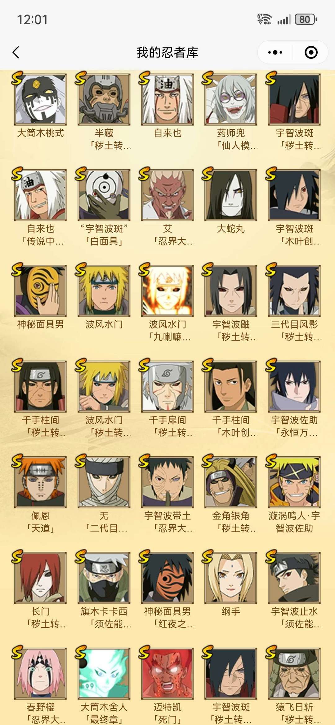 40S⭐57A⭐九喇嘛水门⭐再不斩⭐传说自来也⭐舍人⭐侠隐兜⭐暴怒带土⭐须佐卡西⭐十周年鸣佐⭐夏日鼬