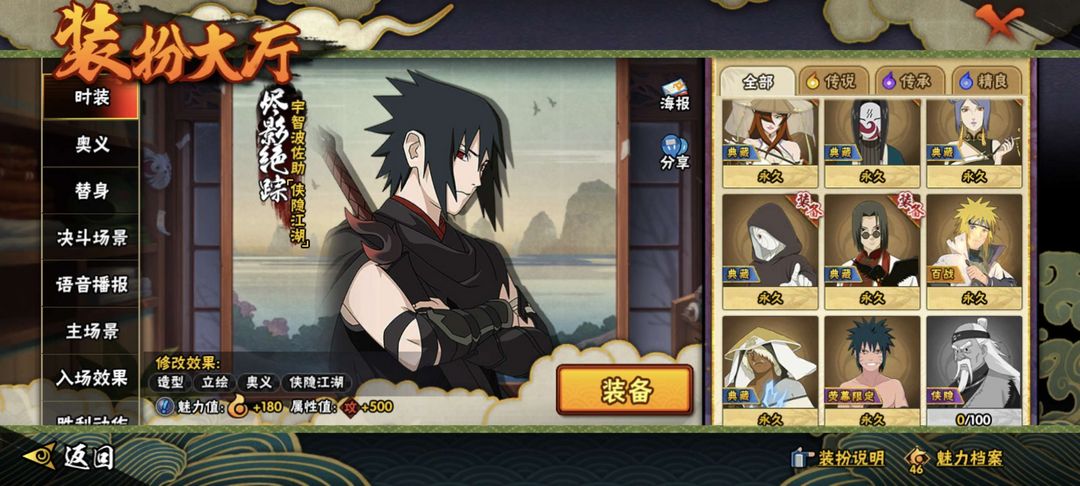 30S❤️61A❤️忍战带土❤️面麻❤️漂泊扉间❤️侠隐兜❤️侠隐佐助❤️黑绝,A都有皮肤