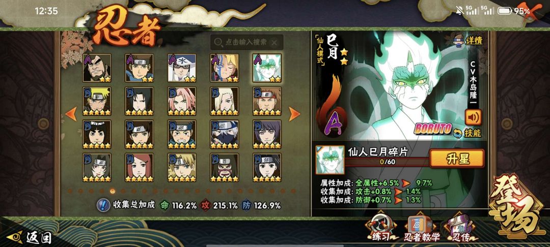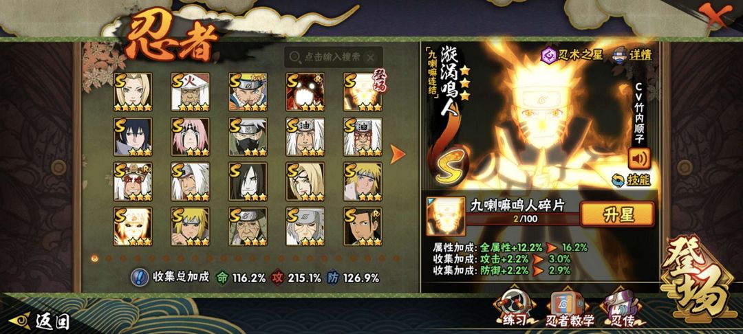 装备描述:热门忍者:神驹佑将阿斯玛、秽土柱间、秽土扉间、秽土三代、秽土水门、黑绝、九喇嘛联结鸣人、九喇嘛连接水门、忍战樱、忍战佐助、小胡子、创立斑、创立柱间、新春水门鼬止水小南等超多忍者