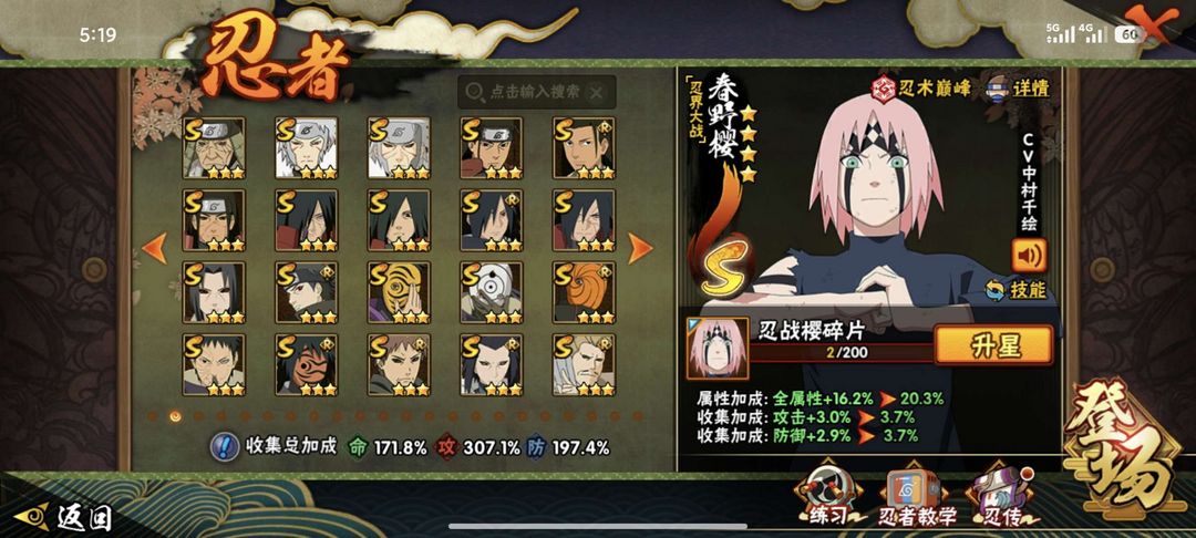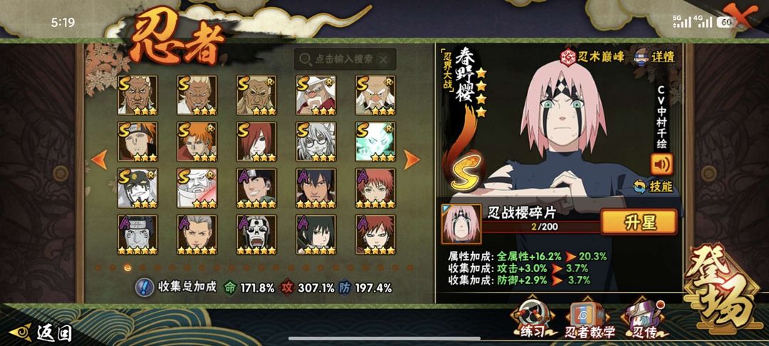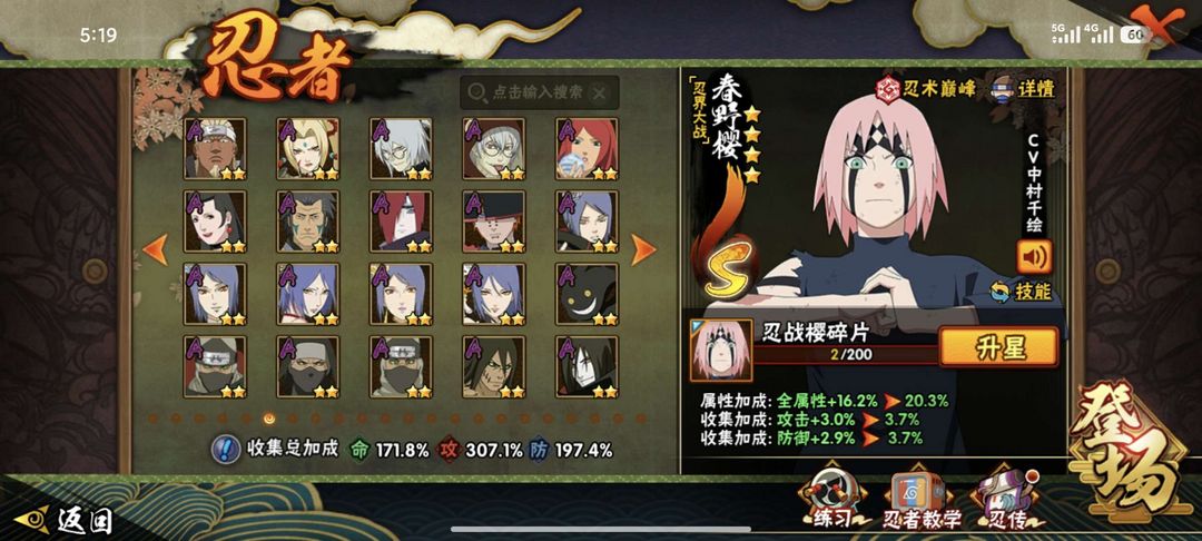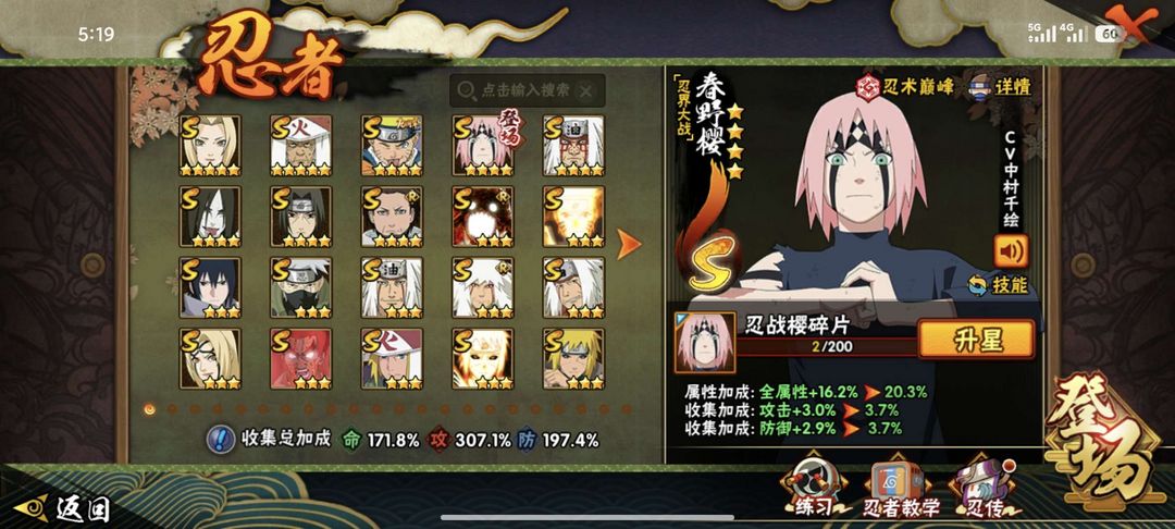 V14特权✨2,893万战力⭐52个S⭐85个A⭐387个忍者⭐点券忍者多 62级魅力值✨