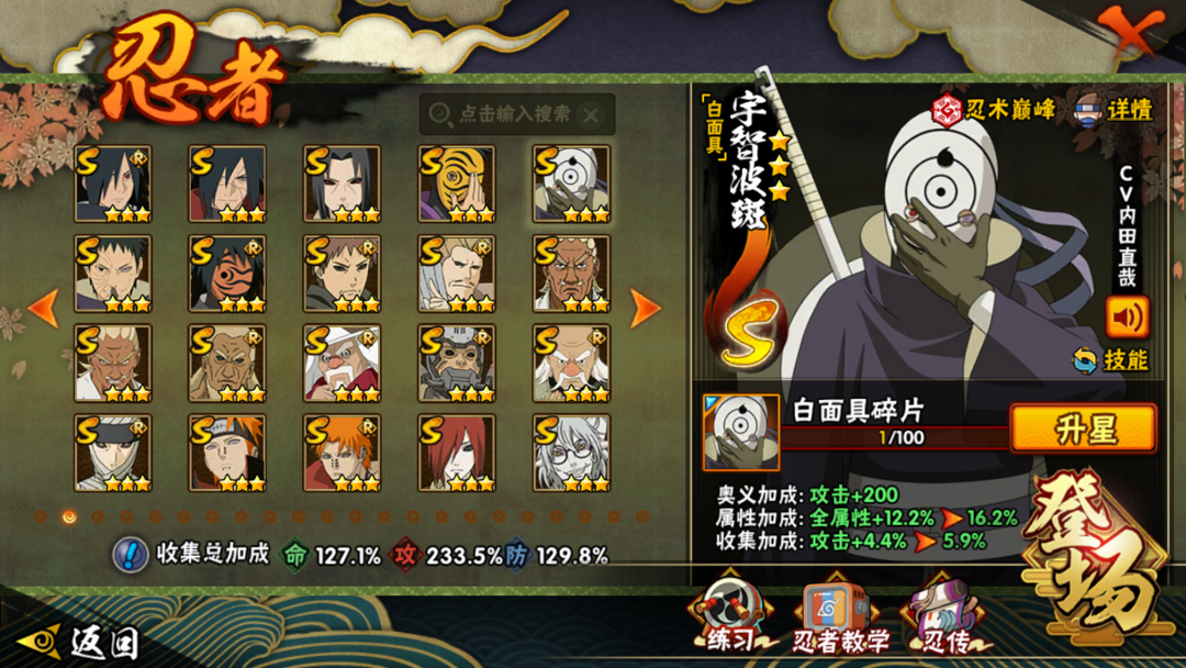 天道超✈宇智波斑✈千手柱间✈白面具半藏✈永恒万花筒✈忍者带土✈40S✈45A✈V13✈1700W战力