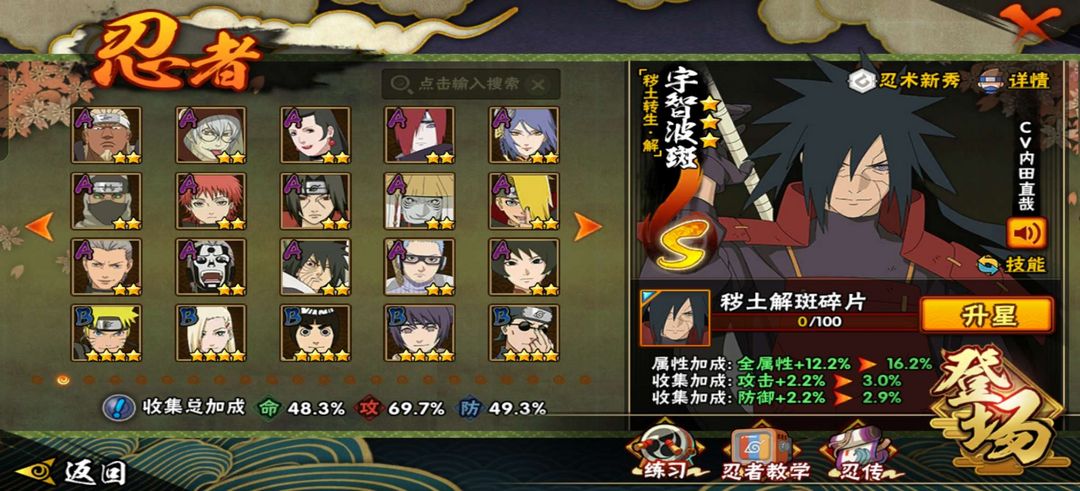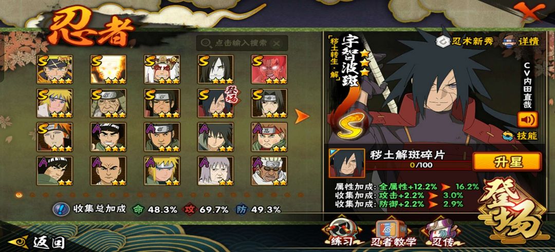装备描述:秽土柱间,九喇嘛鸣人,解斑,秽土老三代,青年长门等