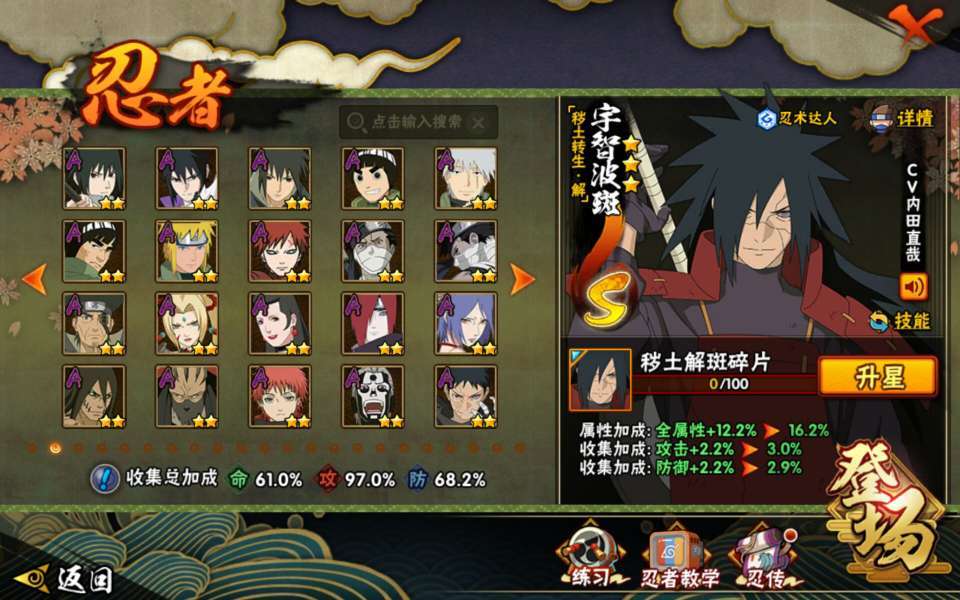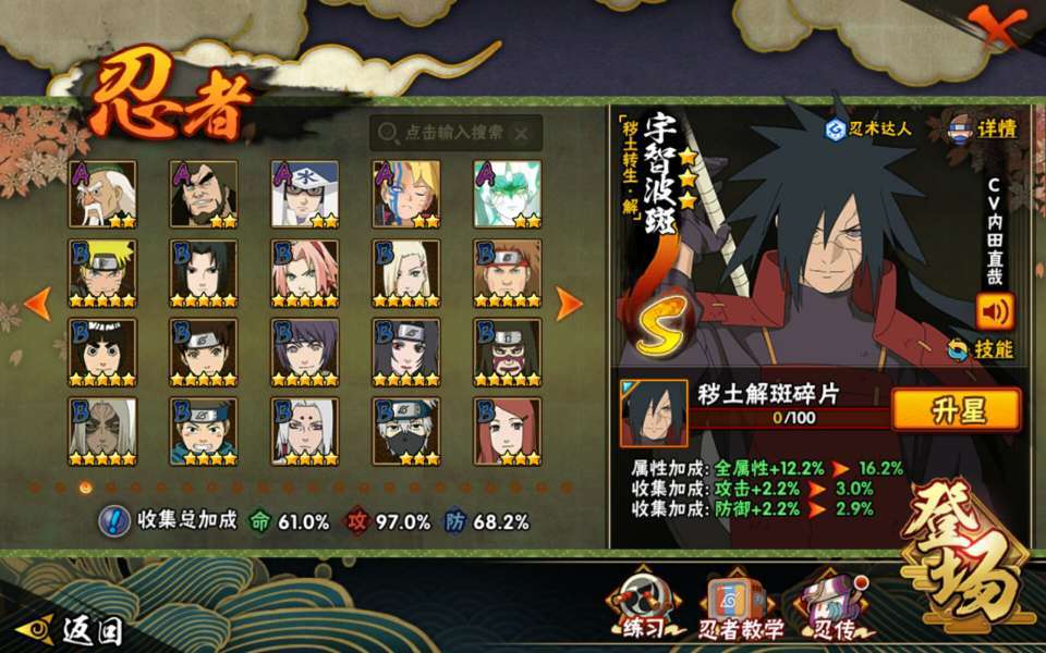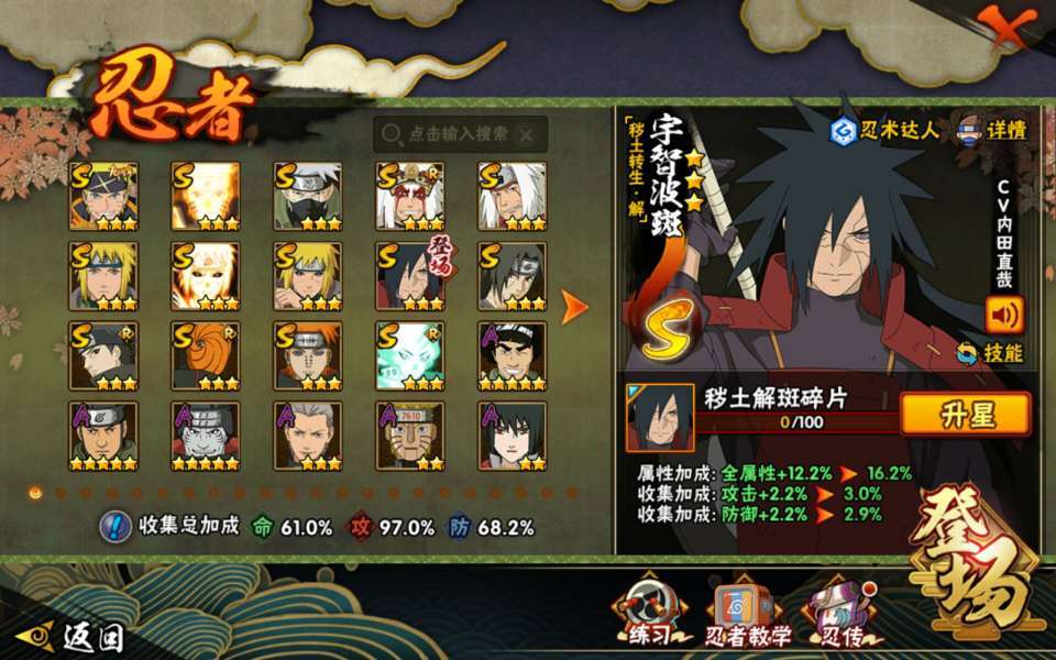 须佐止水,漂泊带土,漂泊南,侠隐佐助,舍人,巳月,桃博,黄猿,长十郎,骨架鹰佐,五影斑,解斑,须佐卡