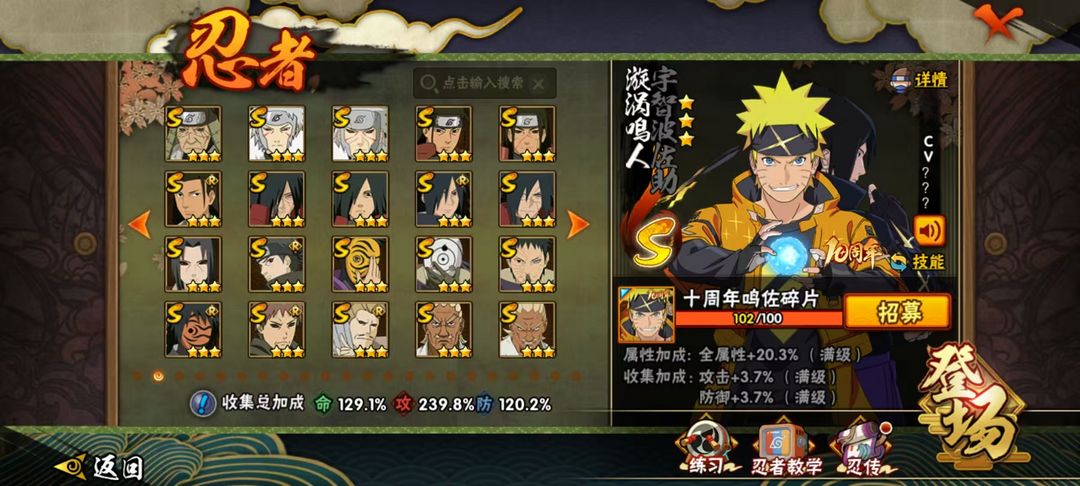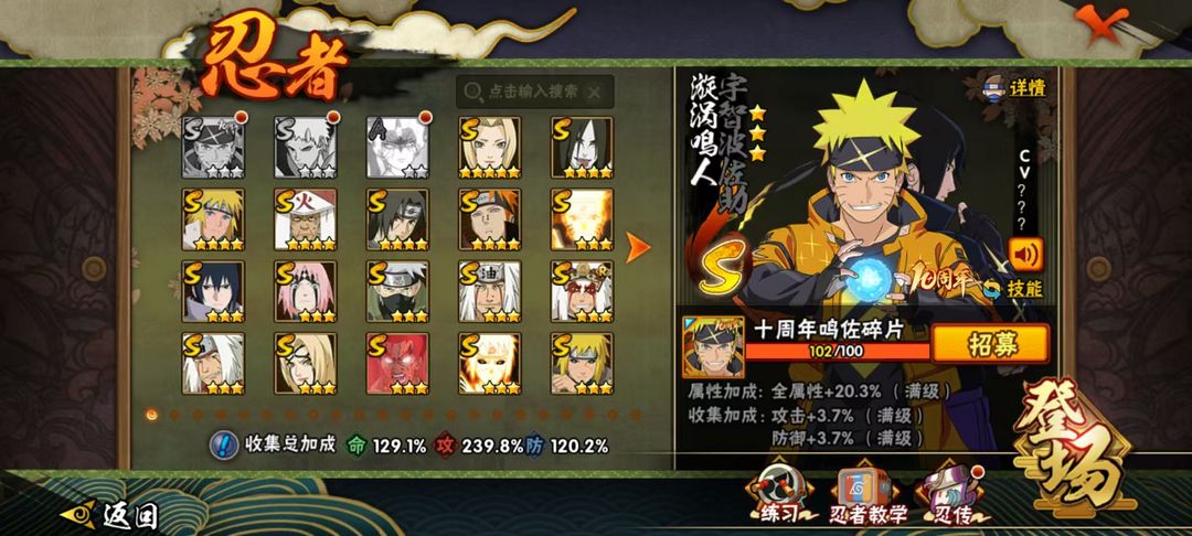 48S十尾带土♈九喇嘛水门♈传说三忍自来也♈须佐卡卡西须佐止水♈万花筒佐助大筒木金式♈忍战春野樱