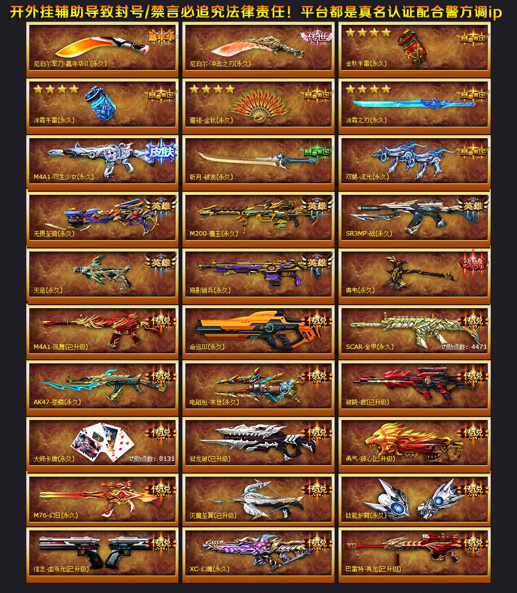 装备描述:【 安全警示:此账号充值金额较大 • 已公安网络财产备案 • 恶意开挂 • 毁号等 • 小店必联合三方平台 • 按账号财产损失原价金额 • 依法立案追究法律责任 • 上号器有截图证据 • IP地址 • 平台注册手机 • 充值记录都是认证的 • 请大佬文明租号 不要以身试法 非常感谢理解】【现在租号都是实名认证不要做违法的事情】