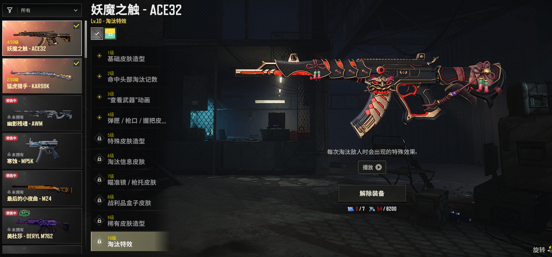 ④级妖魔之触ACE✅②级猛虎猎手98K✅青花之力M762✅蜂刺SLR✅黄道猎手