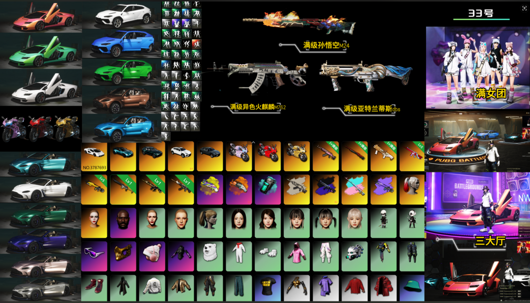 【3满级9神器】布加迪红白双色/满兰博/满二代女团/双马丁/3杜卡迪/满级异色火麒麟/满级孙悟空/满