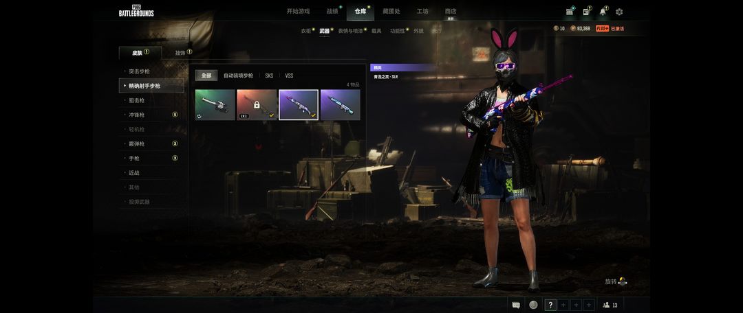 装备描述:二级密码659298宝藏猎人762镀银AUG银河SKS黄金狗砸沙黄道SKS孙悟空AK老兵套装