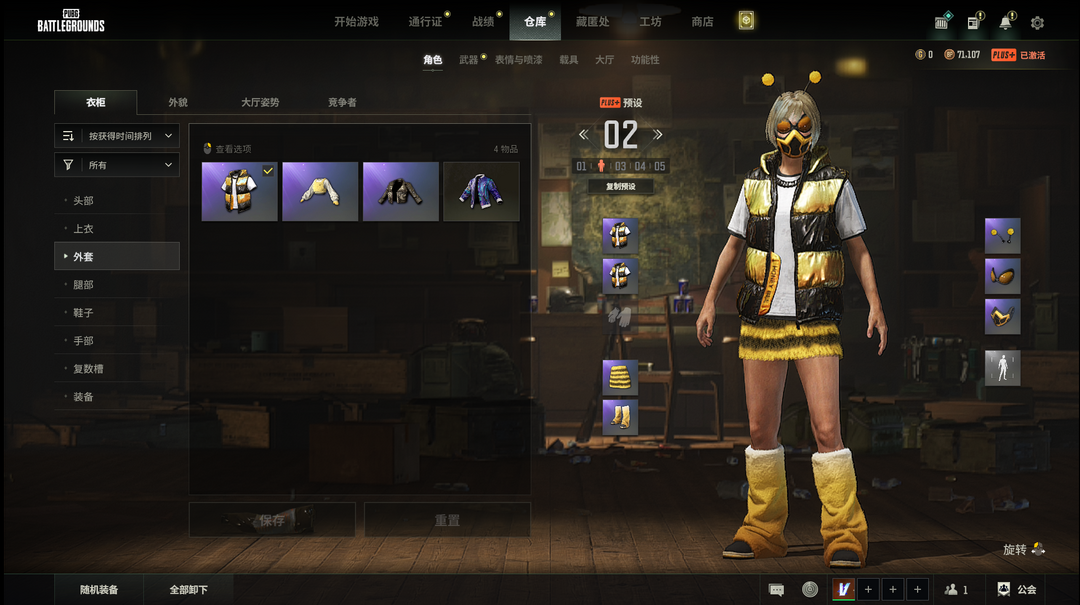 装备描述:保时捷卡宴可排位无畏小蜜蜂大礼包无畏762蔚蓝斯嘎小蜜蜂平底锅坏蛋小蜜蜂马甲甜心上衣小蜜蜂背包套装
