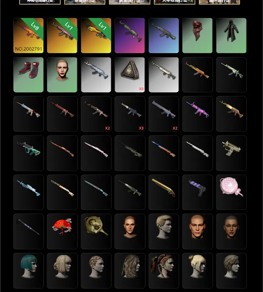 二级密码276279八级南瓜M4火麒麟小兔MK12毒液762绷带AK熊宝贝头盔维纳斯套装