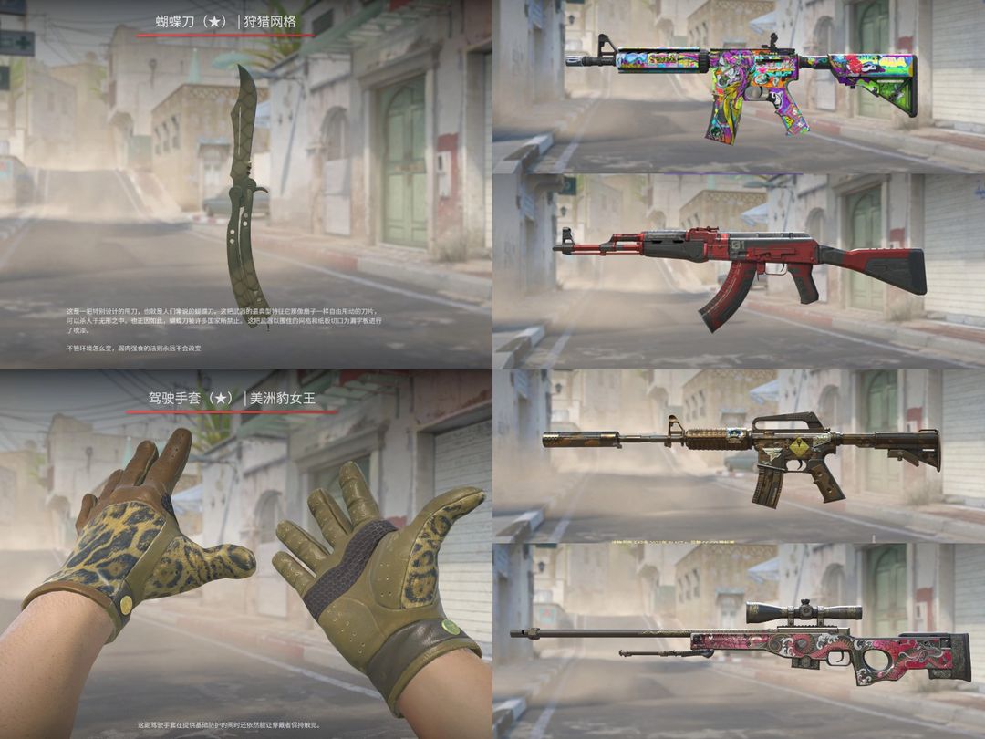 完美B+⭐5E优先⭐蝴蝶刀⭐美洲豹手套⭐AWP金粉肆蛇⭐AK47轨道⭐M4A1泥斑迷彩