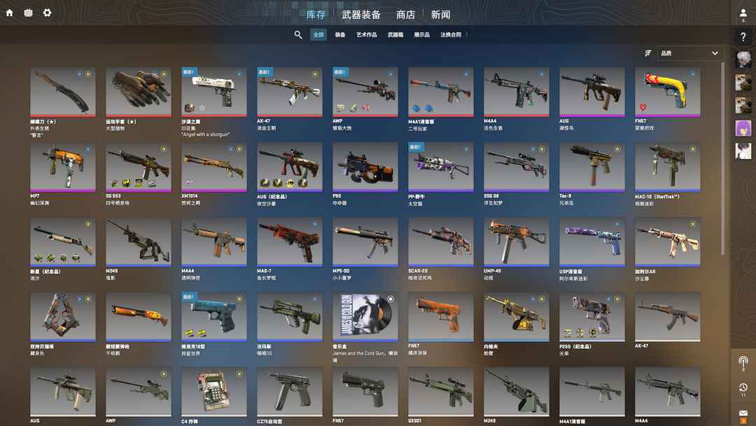 完美B+⭐黄宝石蝴蝶刀⭐流金王朝AK⭐大型猎物手套⭐二号玩家M4A1⭐镀铬大炮⭐印花集沙鹰