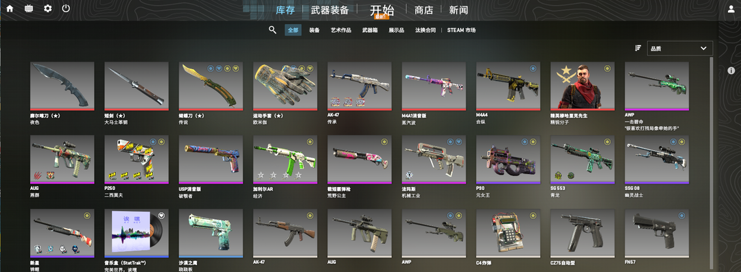 可5E❤传说蝴蝶刀❤大马士短剑❤欧米伽❤青花瓷AK❤蒸汽波A1❤一击碧命狙❤合众M4