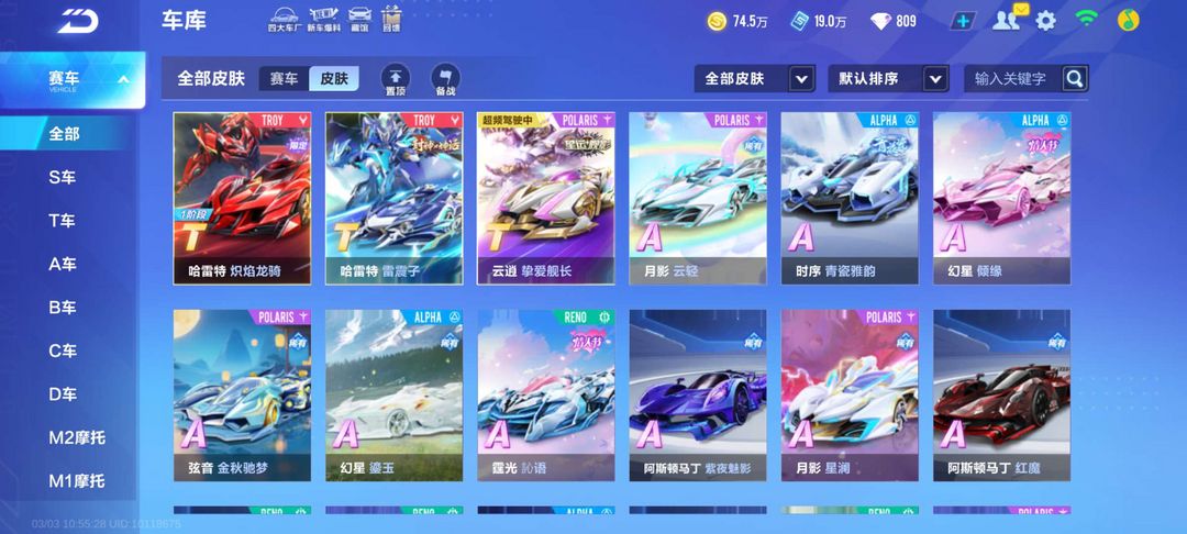T车2辆哈雷特和云逍,A车幻星,霆光,月影……宠物2神宠,皮肤的话请看图片,想玩的话可以下单哦