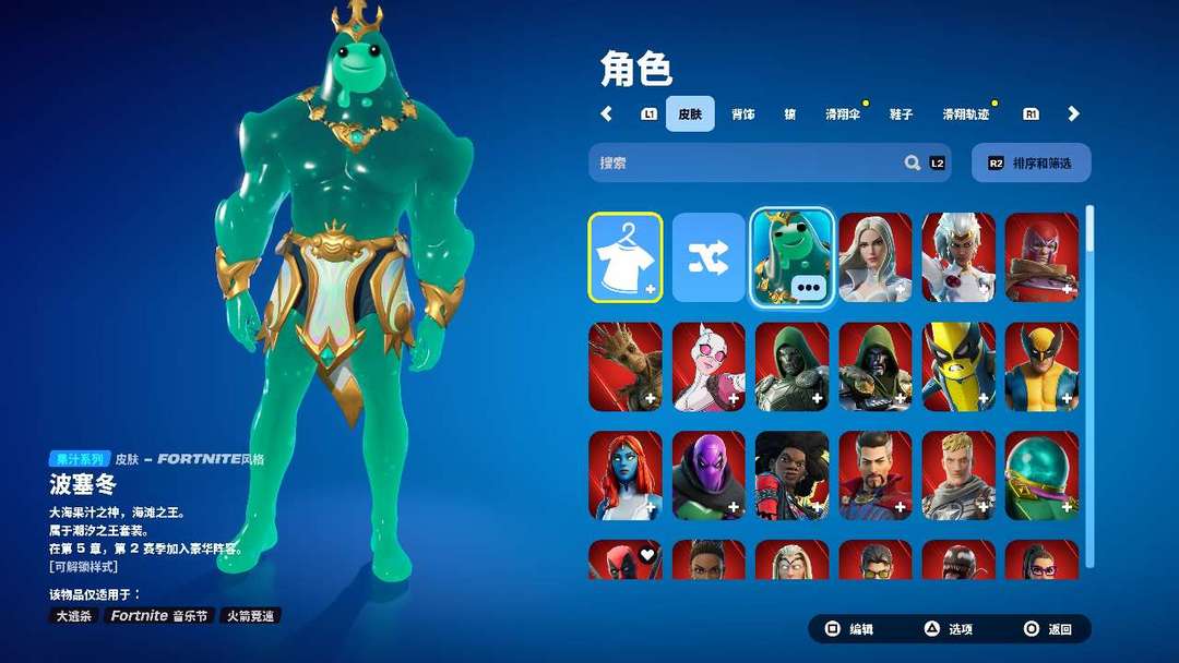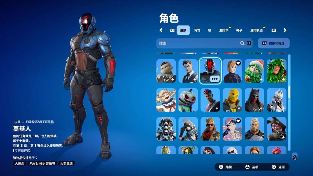 装备描述:皮肤300左右,背饰294,稿子244,滑翔伞202 角色方面有堡垒出过的雷克萨全皮肤和奎托斯,另外还有以前圣诞节的树人和降落伞千年隼,季卡有些有打满有些没打满