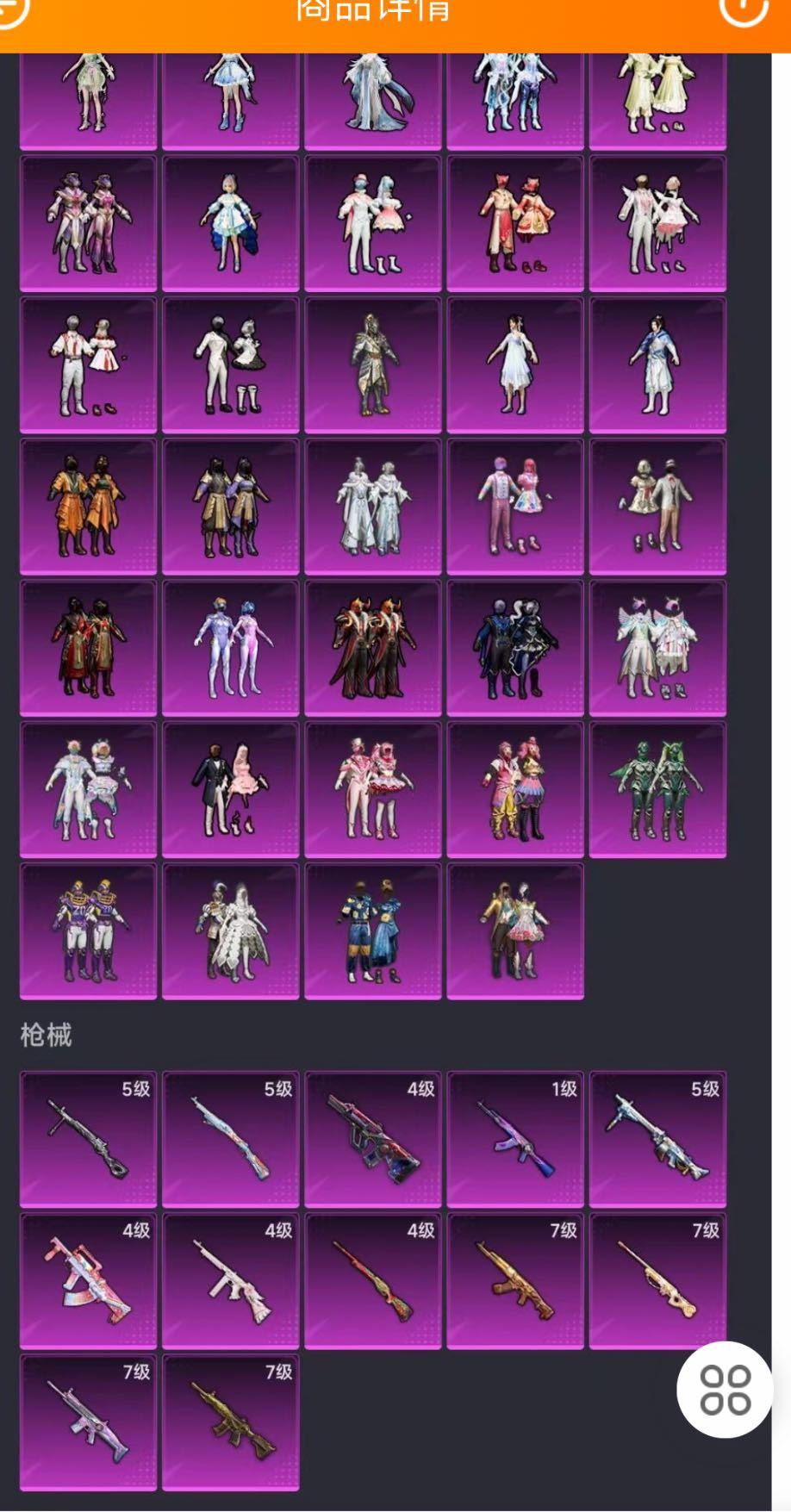装备描述:33粉装,13高等级特效枪,300多枪皮,300多衣服,5载具,13万热力。该有的都有
