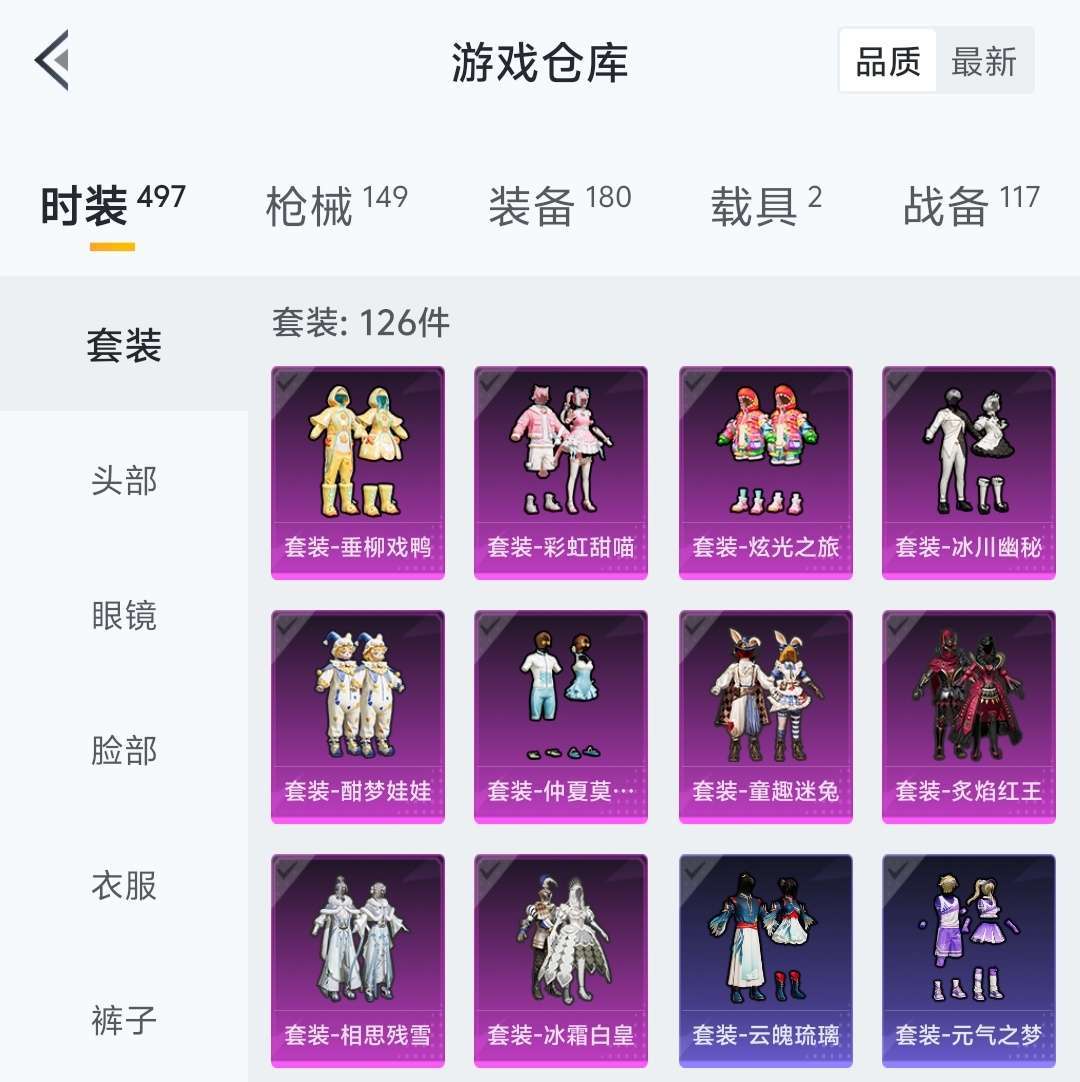 装备描述:9粉装/4特效枪 五爪金龙 墨龙/2载具/4飞行器 童趣迷兔 彩虹甜喵 仲夏莫吉托 都市猎人 适合妹妹玩