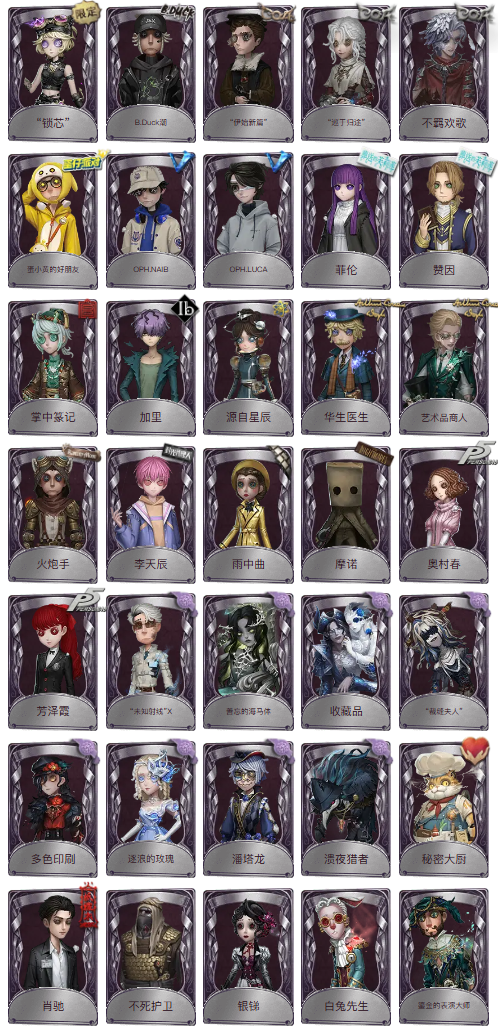 装备描述:金皮:司药、石榴碟小姐、溯光、于此岸赴宴、片刻闲暇、千里绘卷、福尔摩斯、盛夏飞盘、胧夜、欧律狄刻、变彩、缚愿、耶梦加得 紫皮:锁芯、B.Duck潮(佣兵潮)伊始新篇、巡于归途、不羁欢歌、蛋小黄的好朋友、OPH.NAIB、OPH.LUCA、菲伦、赞因、掌中篆记、加里、源自星辰、华生医生、艺术品商人、火炮手、李天辰、雨中曲、摩诺、奥村春、芳泽霞、未知射线、善忘的海马体、收藏品、裁缝夫人、多色印刷、逐浪的玫瑰、潘塔龙、溃夜猎者、秘密大厨、肖驰、不死护卫、银锑、白兔先生、鎏金的表演大师、郁金香之梦、冬蝉、历战猎人、鸩、妄念的陈伤、紫孔雀、仙鹤、彼岸、噬恶之渊、ACE、狡、最后一舞、桃面书生、行于界限间、吟游诗人、游隼、水球救生、熄灭的太阳、暮影、无归的昨日、善恶的本性、鬼脸天蛾、无用功、温暖的平安夜、诡焰、光织守护、聚光灯下、书记官、衣帽架先生、厄运、警醒的龟先生、考古教授、伊卡洛斯、裁纸机、人造天堂、女高音、霰、琴键、林间狩者、月下绅士、琥珀、逆刃之鞭、隐于夜色中、茶歇小姐、发散谱 金挂:折柳、无限、转位、山水泛舟、涅槃、残局的王将、猫尾、毁誉之印、父亲的怀表、光明、无尽森林、厌离 紫挂:记忆囚笼、微缩星球、魔导书、充气海豚、日与月、蝶影、落木、巫毒匕首、白玉、漂浮、秘密、匣中风云、介壳虫、全熟、醒梦铃、纠缠、蓝玫瑰手杖、酩酊、协律、拾贝、喝彩、笔尖柔情、登峰、天羽、命茧