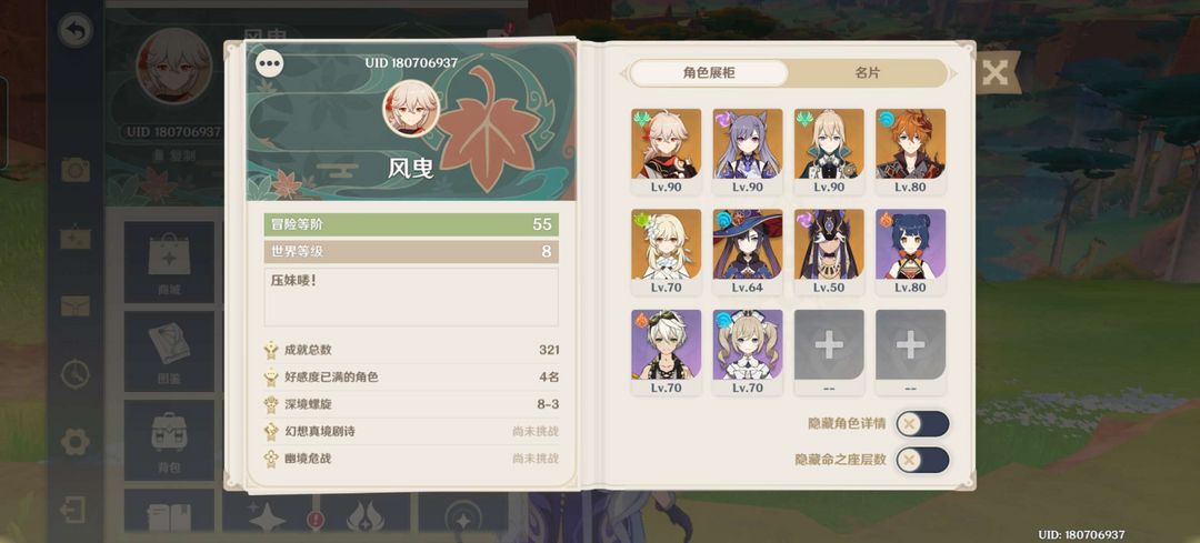 工具人账号,千精毕业万叶,充能毕业二命莫娜,毕业琴,刻晴,公子,赛诺
