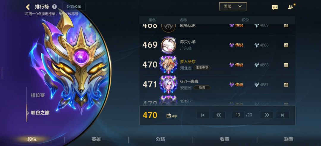 【魂魂】传说至尊在榜国三黑默丁格本赛季国一大头丨历史至尊段百星峡谷传说丨禁峡谷之巅丨求好评收藏