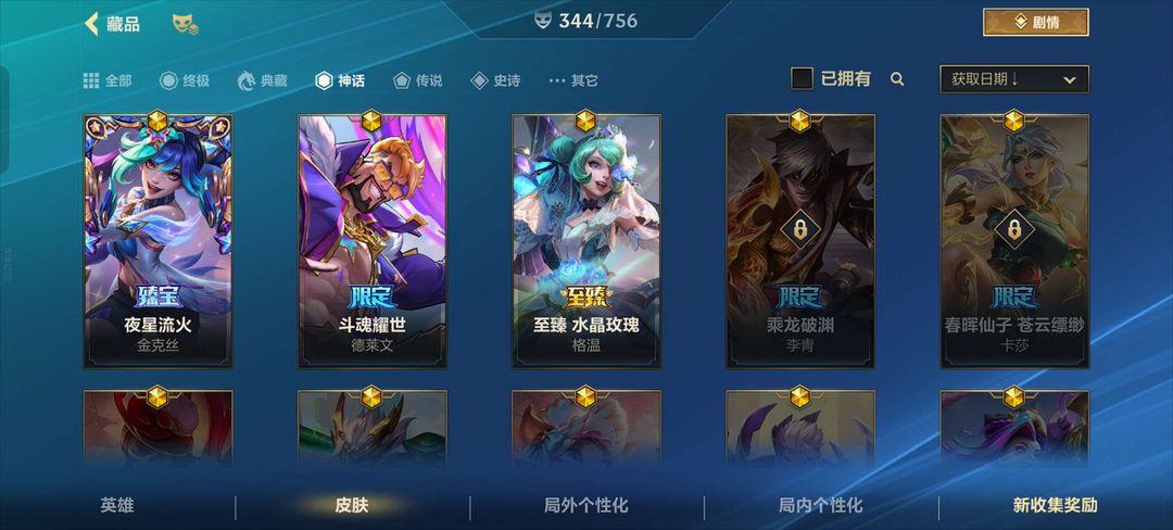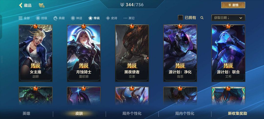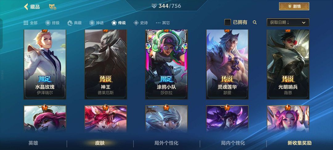 可排位,344皮肤,全英雄,拉克丝钢铁军团,沙弥拉涂鸦小队,20传说皮肤