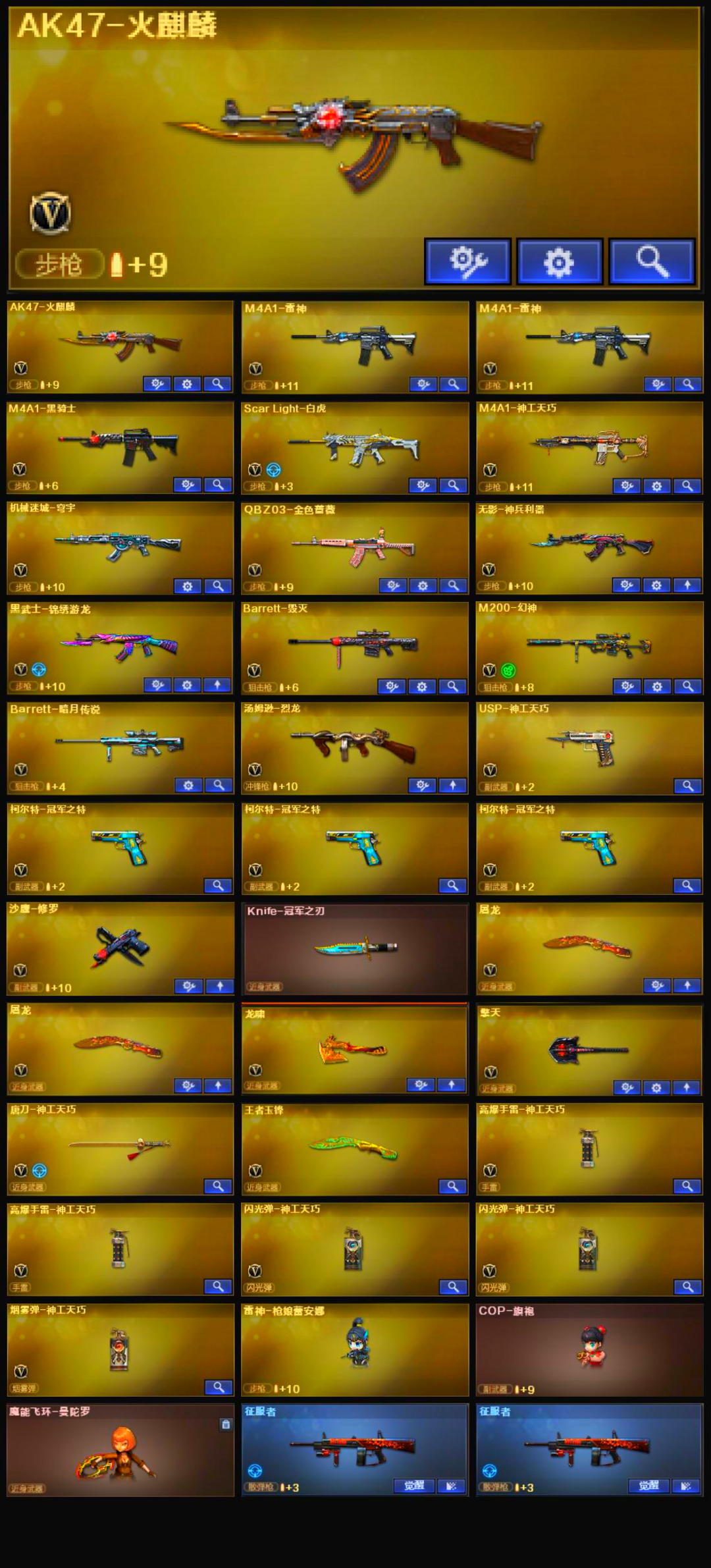 3柯尔特冠军之特+冠军之刃+幻神黄忠+白虎音效卡+金色蔷薇神工USP+荣耀之怒战神张飞毁灭音效卡