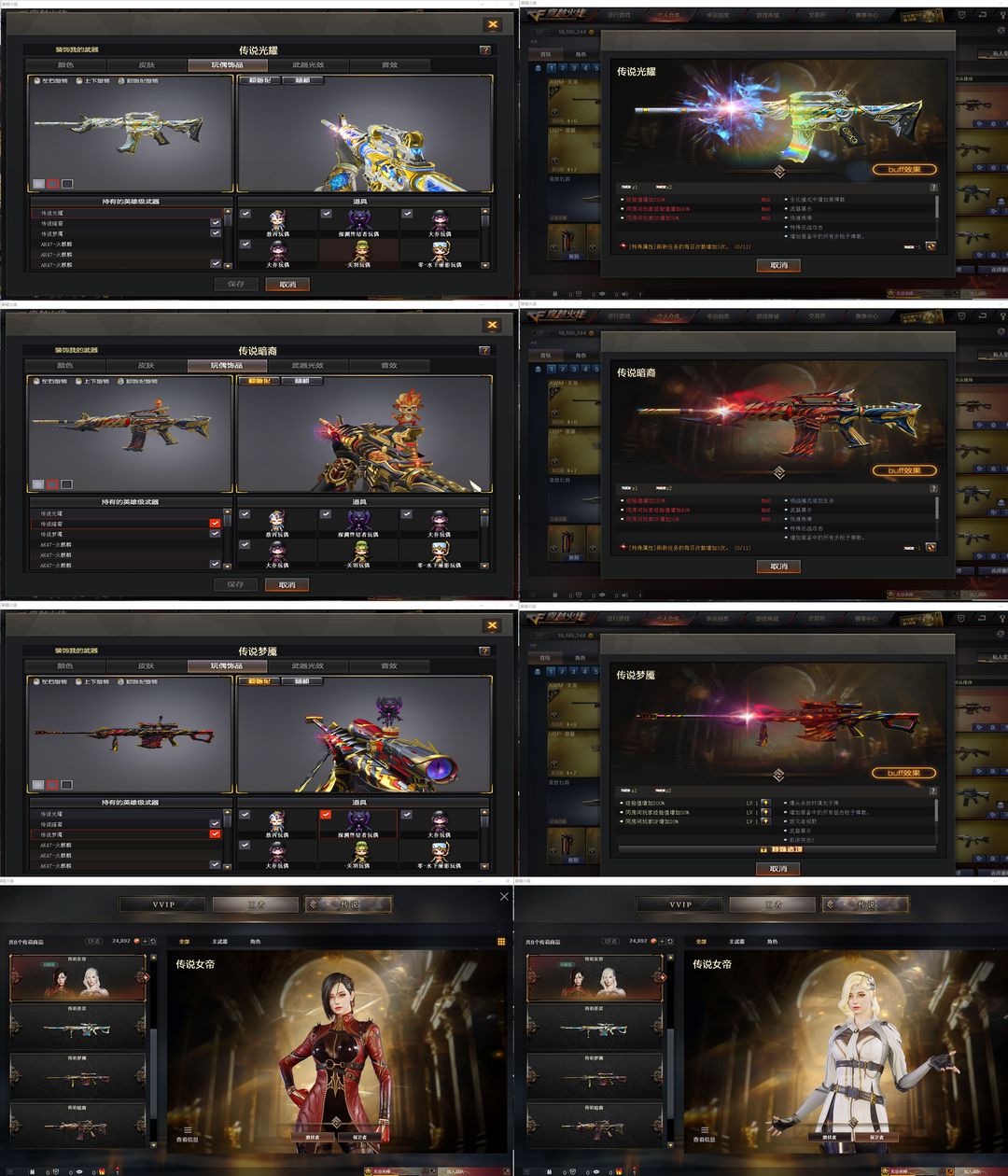6传说灵眸女帝2雷暴❤AG宠儿N9幻神裁决音效卡❤白鲨世冠套星神竞技套❤满配手枪生化6盘6烈蝴蝶小钢