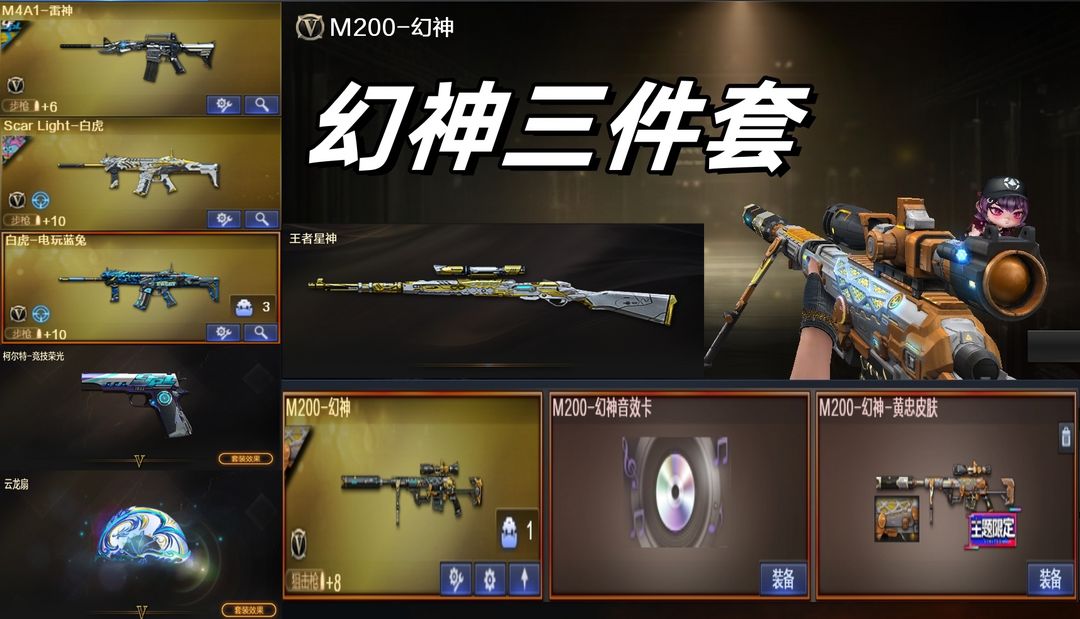 M200-幻神音效卡⚡幻神皮肤三件套⚡王者星神⚡柯尔特竞技荣光云龙扇⚡白虎双音效卡✅生化6烈6炼毒蜂