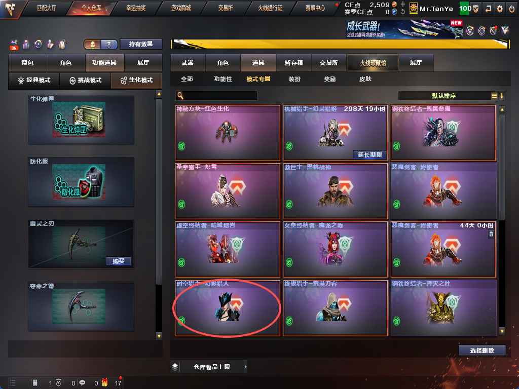 时空猎手✨17个生化皮肤✨斯泰尔蝴蝶小人救世主✨三防生化背包✨炼狱皮肤幻神可排不退包满榴弹伪炽芒蝶刃