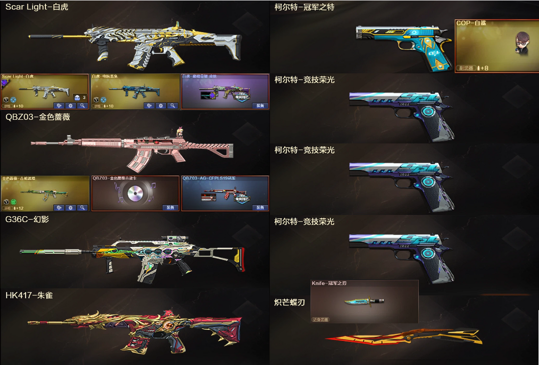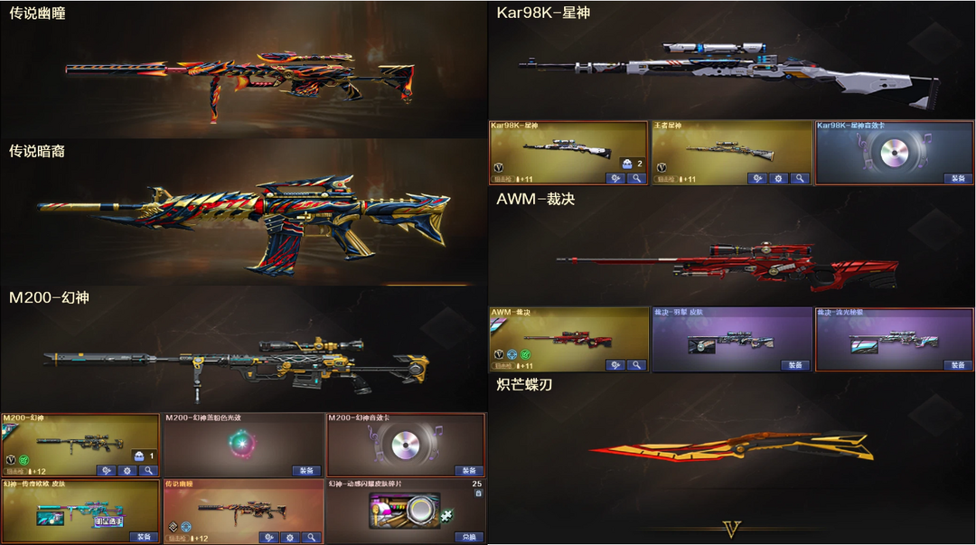 传说幽瞳暗裔♉幻神欧欧音效+星神裁决♉QBZ三件套+白虎幻影+5副冠军特刃炽芒♉战将涂鸦蝴蝶毒蜂6烈
