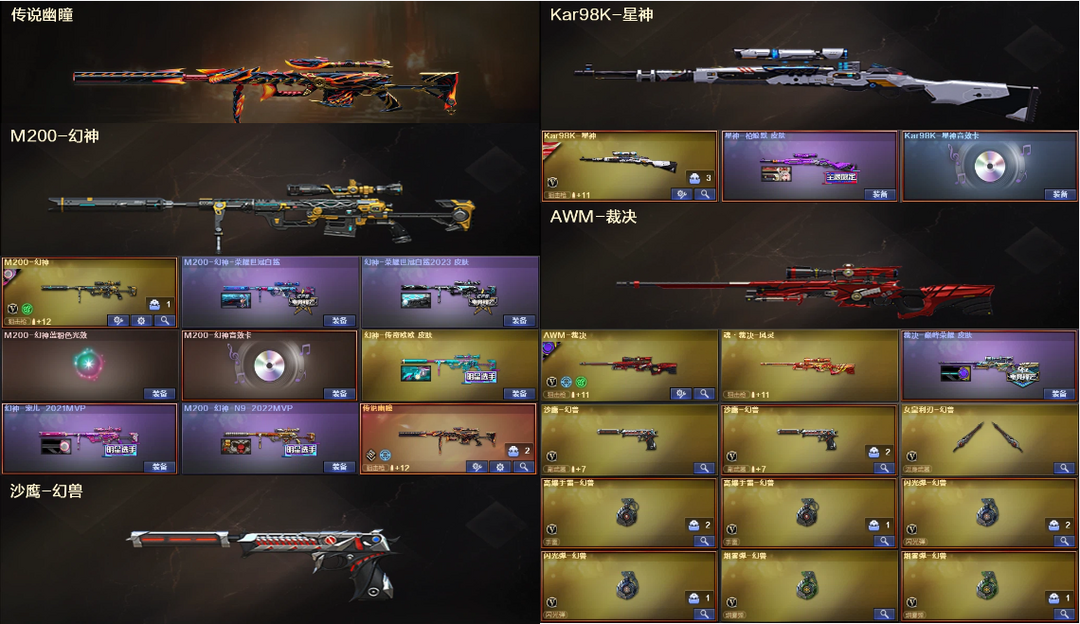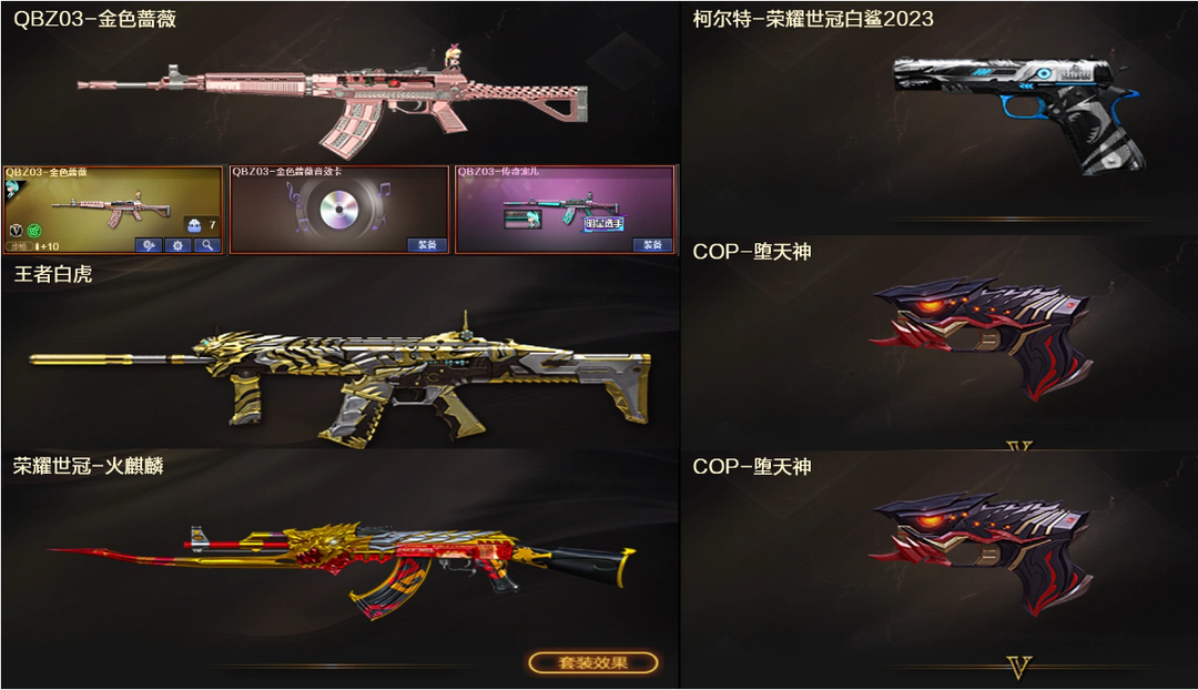 传说幽瞳✨幻神6皮欧欧宠儿念旧音效✨QBZ蔷薇星神三件套+白虎裁决✨白鲨柯尔特+2套幻兽雷✨四防魅影
