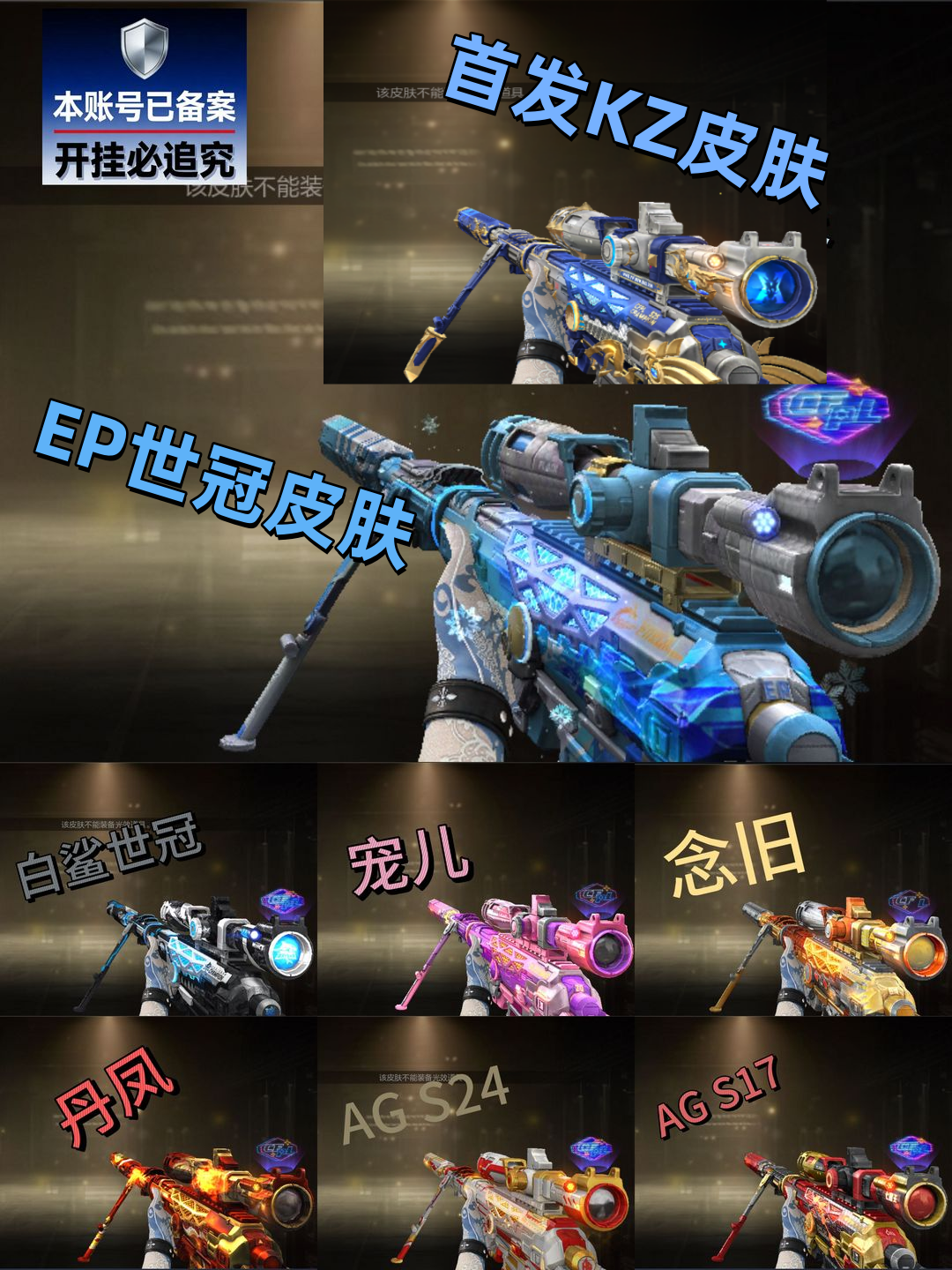 满狙卡加利尔天袭天戎✨妮妮8皮KZ幻神音效卡ぃEP柯尔特雷暴丨5皮裁决卡5皮星神卡丨白虎卡传说QBZ