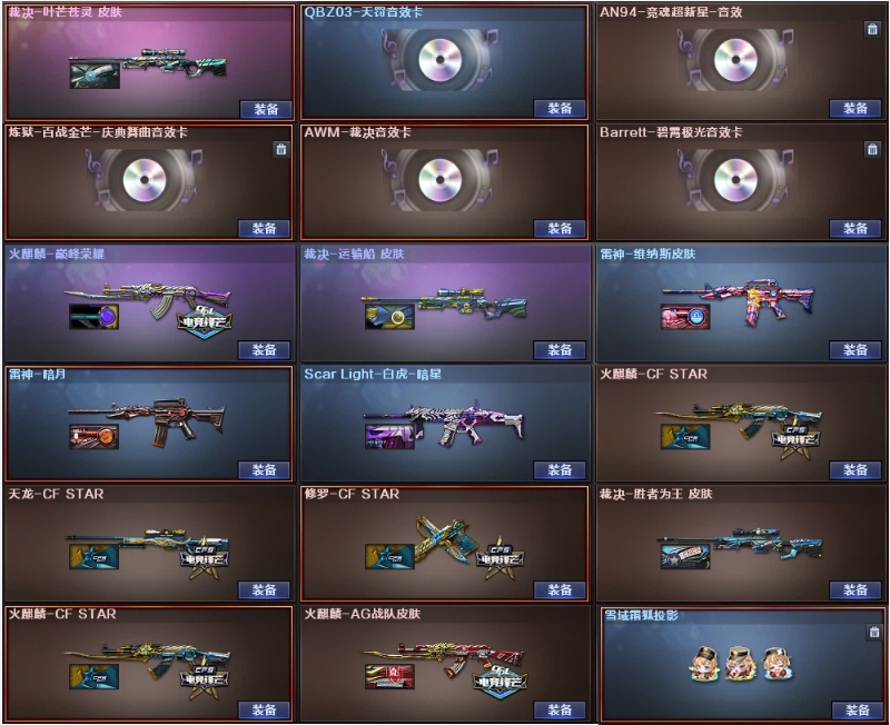 传说幽瞳4防星骇✨裁决胜者为王运输船叶芒音效卡✨玄豹白虎九尾白狐+天罚QBZ狼王+天戎USP冥王