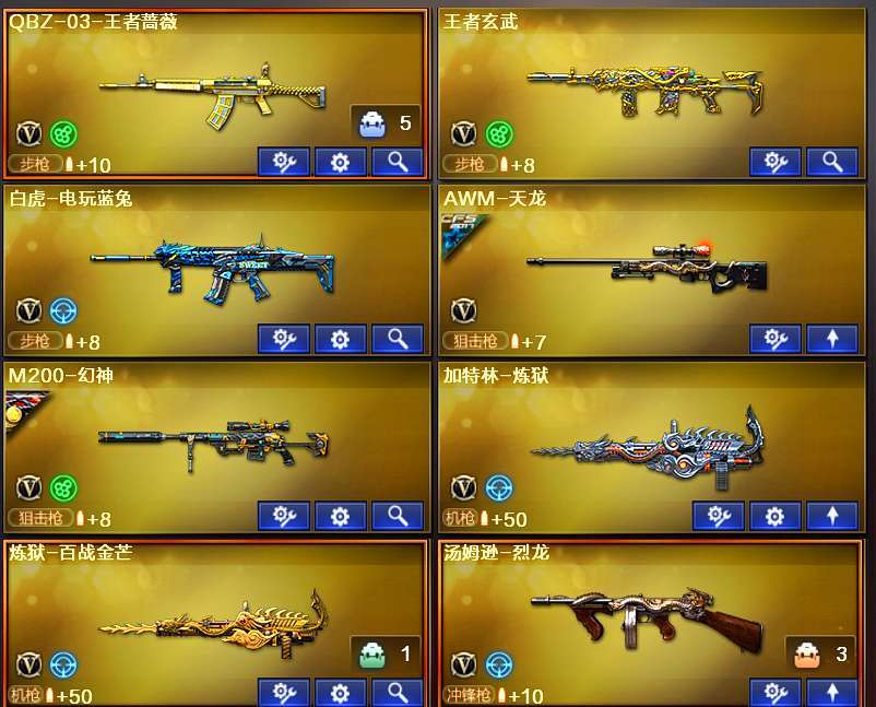 ★VIP6影煞+2炽芒蝶刃蛇2斯泰尔小人枪(所有弹匣齐全)+3炼狱+王者玄武蔷薇。(可追击)