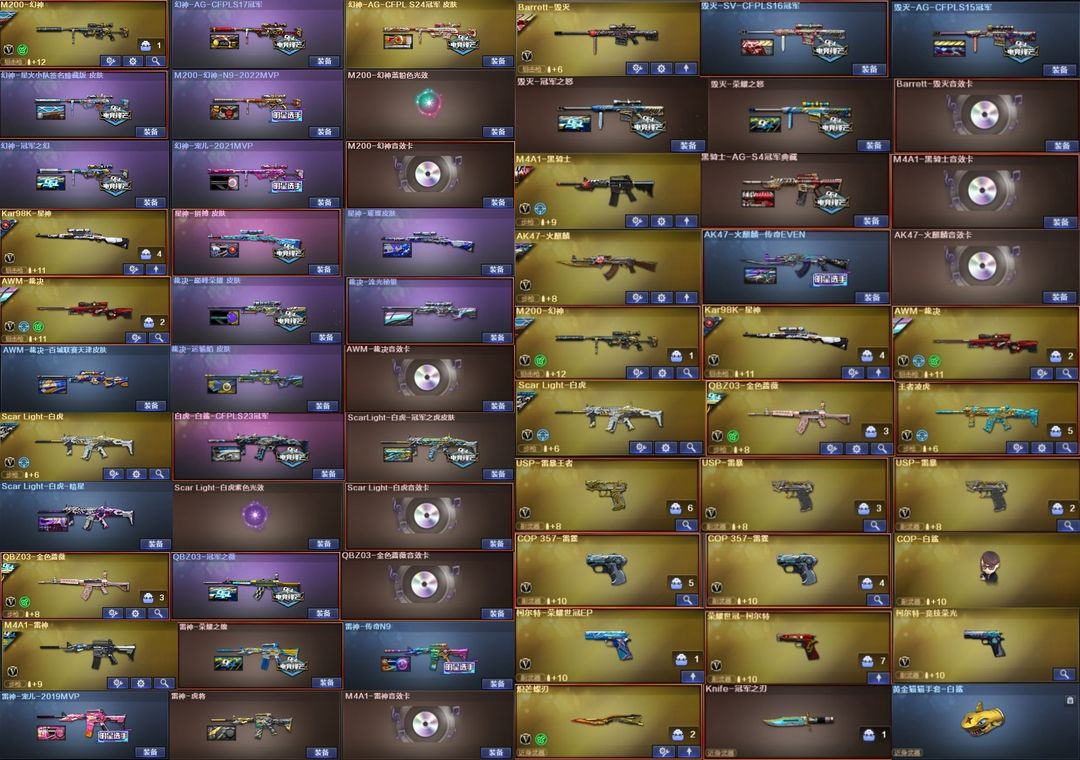 枪王【北部】幻神宠儿星火6皮+音⭐裁决套+星神拼搏皮⭐白虎蔷薇套⭐cop雷暴冠特刃*3⭐蝴蝶刀