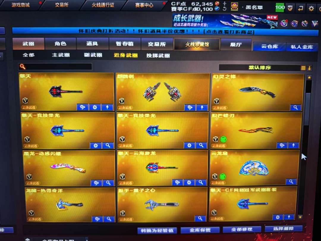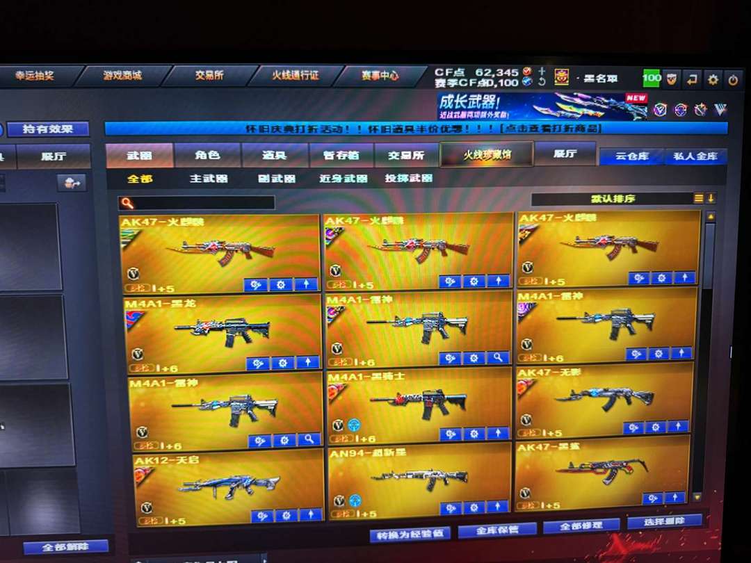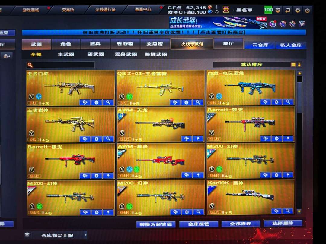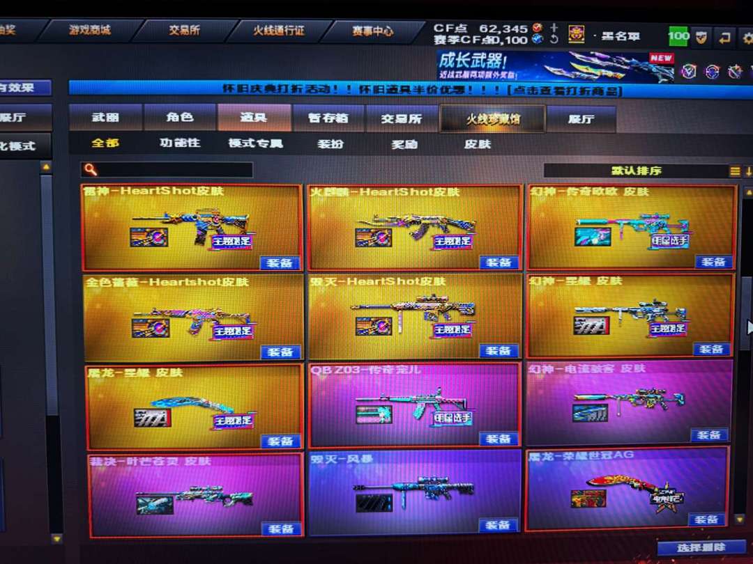 装备描述:幻神三件套,音效卡,星神三件套皮肤加音效卡,裁决三件套皮肤加音效卡,王者白虎,蝴蝶刀,6烈龙,爆破生化